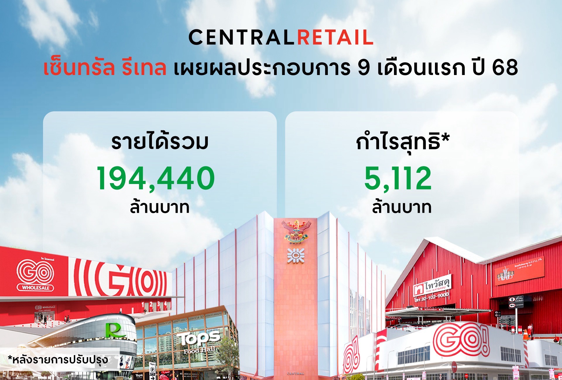 เซ็นทรัล รีเทล โชว์ผลประกอบการ 9 เดือนแรก ปี 68 กวาดรายได้รวม 194,440 ล้านบาท พร้อมสปีดอัพกลยุทธ์ ‘New Heights, Next Growth’ ปลุกค้าปลีกค้าส่งในไทยและเวียดนาม