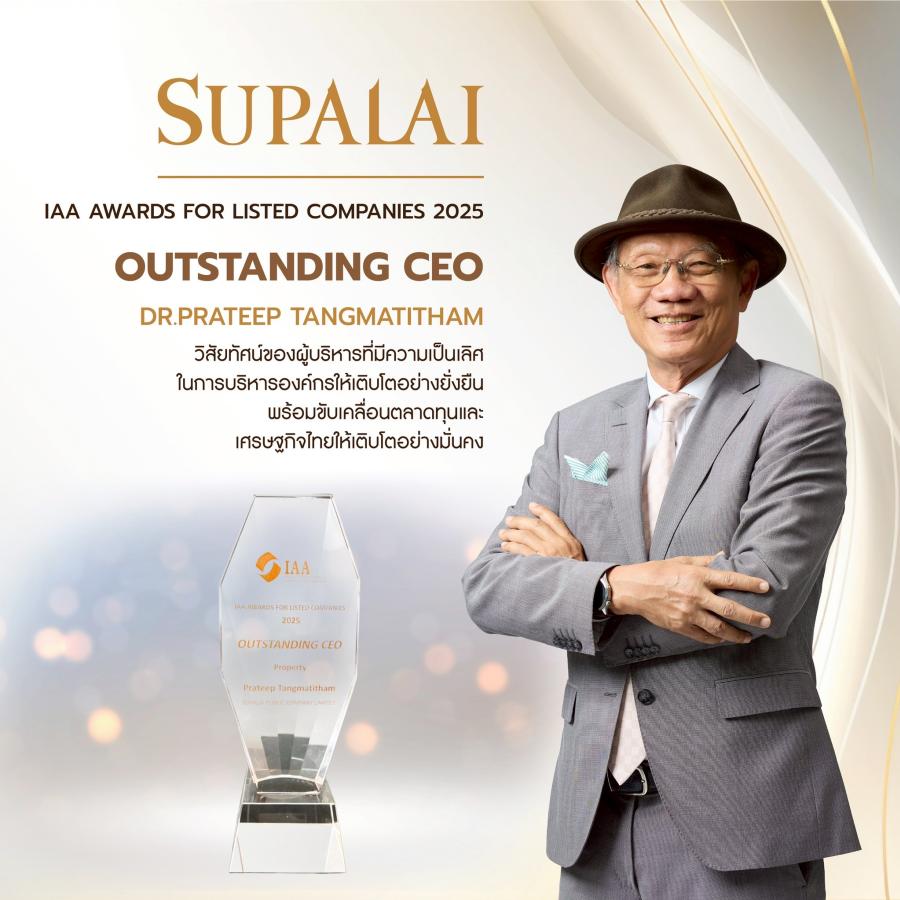 บริษัท ศุภาลัย จำกัด (มหาชน) ผู้นำธุรกิจพัฒนาอสังหาริมทรัพย์ คว้ารางวัลคุณภาพ “Outstanding CEO” ในกลุ่มพัฒนาอสังหาริมทรัพย์ จากเวที IAA Awards for Listed Companies 2025 มอบให้แก่ ดร.ประทีป ตั้งมติธรรม ประธานกรรมการบริหาร รางวัลดังกล่าวมอบให้ผู้บริหารที่มีความเป็นเลิศด้านการบริหารธุรกิจ สะท้อนวิสัยทัศน์และบทบาทสำคัญในการขับเคลื่อนองค์กรให้ประสบความสำเร็จเติบโตอย่างยั่งยืน ตลอดจนมีส่วนร่วมในการพัฒนาเศรษฐกิจและตลาดทุนของประเทศไทยโดยรวม