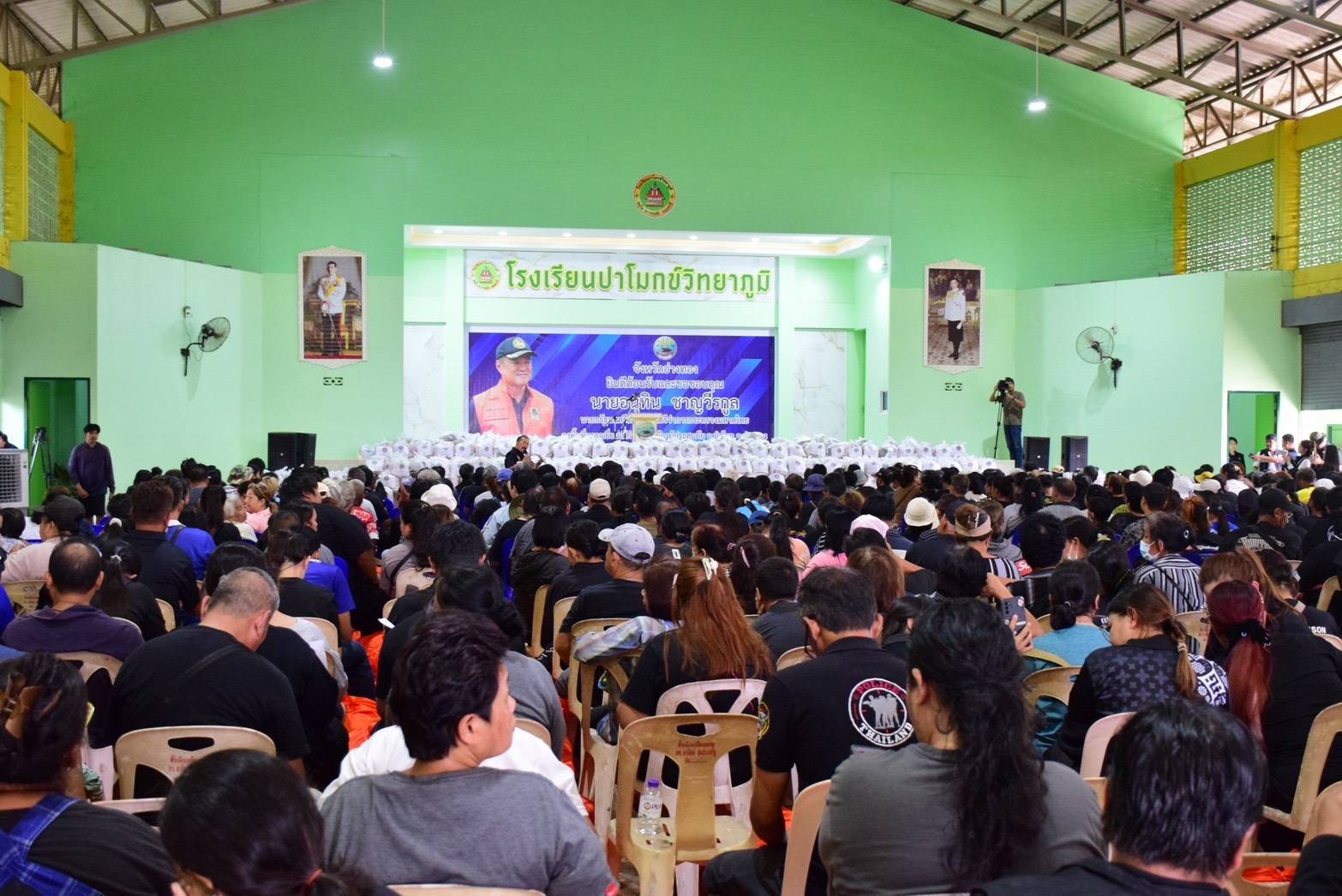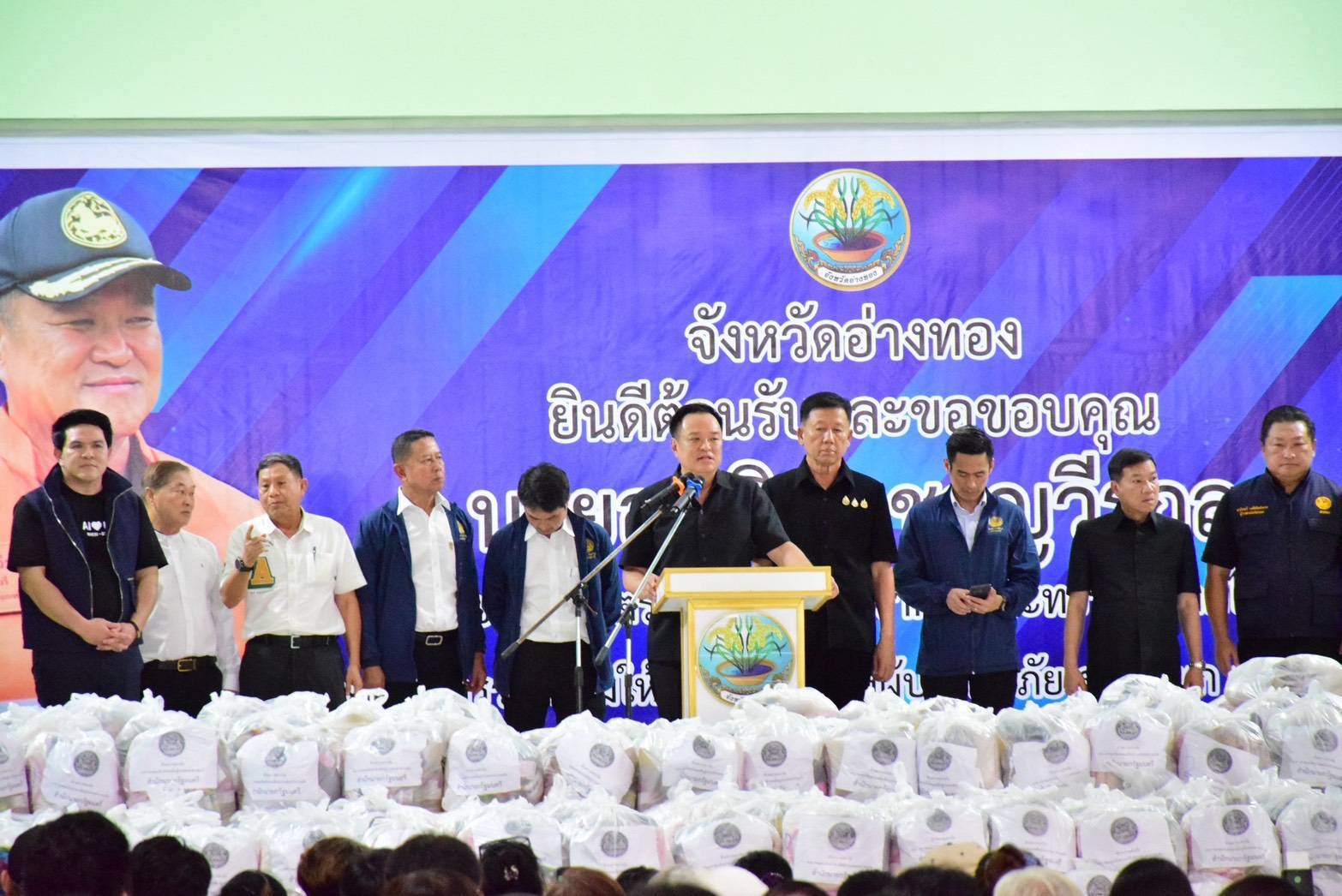 เมื่อวันที่ 12 พฤศจิกายน พ.ศ. 2568 เวลา 12.30 น. นายอนุทิน ชาญวีรกูล นายกรัฐมนตรีและรัฐมนตรีกระทรวงมหาดไทย พร้อมคณะเดินทางมาตรวจราชการจังหวัดอ่างทอง และมอบถุงยังชีพช่วยเหลือผู้ประสบอุทกภัยในพื้นที่ จำนวน 1,500 ชุด นายชวนินทร์ วงศ์สถิตจิรกาล ผู้ตรวจราชการกระทรวงมหาดไทย รักษาการในตำแหน่งผู้ว่าราชการจังหวัดอ่างทอง กล่าวรายงานสรุปสถานการณ์อุทกภัยในพื้นที่ฯ โดยมีส่วนราชการร่วมต้อนรับดังนี้ พล.ต.ต.สถาพร เอมโอษฐ์ รอง จตร.ช่วยราชการ ภ.1 พล.ต.ต.กิตติ สกุณี ผบก.ภ.จว.อ่างทอง พ.ต.อ.เมธา วงศ์อนันต์นนท์ รอง ผบก.ภ.จว.อ่างทอง พ.ต.อ.เกียรติศักดิ์ มิตรปราสาท รอง ผบก.ภ.จว.อ่างทอง พ.ต.อ.ศักดิ์ชัย ไกรวีระเดชาชัย ผกก.สภ.ป่าโมก พร้อมด้วยเจ้าหน้าที่ทหาร มทบ13 ฝ่ายปกครอง และส่วนราชการที่เกี่ยวข้อง ประชาชนผู้ประสบอุทกภัย ร่วมให้การต้อนรับ ณ โรงเรียนปาโมกข์วิทยาภูมิ อ.ป่าโมก จ.อ่างทอง