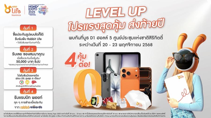 กรุงเทพฯ 17 พฤศจิกายน 2568 - บริษัท แรบบิท ประกันชีวิต จำกัด (มหาชน) หรือ Rabbit Life บริษัทในเครือบริษัท บีทีเอส กรุ๊ป โฮลดิ้งส์ จำกัด (มหาชน) เตรียมยกทัพผลิตภัณฑ์ประกันลดหย่อนภาษีและโปรโมชันเด็ดส่งท้ายปี ร่วมงานมหกรรมการเงินกรุงเทพครั้งที่ 25 (MONEY EXPO BANGKOK YEAR- END 2025) จัดขึ้นภายใต้แนวคิด Resilient Wealth to Level Up Life หรือการสร้างความมั่งคั่งแบบยืดหยุ่น ทางด้านการเงิน สุขภาพ และการใช้ชีวิต พร้อมพลิกเกมความคุ้มแบบก้าวกระโดดถึง 4 คุ้ม ไม่ว่าจะเป็น คุ้มที่ 1: รับร่มพับสุดเก๋ เมื่อซื้อผลิตภัณฑ์ทุกรูปแบบ คุ้มที่ 2: รับเพิ่มของสมนาคุณ อาทิ Central Gift Voucher, AirPods 4, Apple Watch Series 11, iPad Air 128 GB, iPhone 17 Pro Max256GB และอื่น ๆ อีกมากมาย เมื่อซื้อประกันเบี้ยเริ่มต้น 50,000 บาทขึ้นไป คุ้มที่ 3: โปรโมชันผ่อน 0% นานสูงสุด 6 เดือน สำหรับลูกค้าที่ชำระผ่านบัตรเครดิตที่ร่วมรายการ (KTC, Krungsri, และ KBANK) คุ้มที่ 4: รับแรบบิท พอยท์ ทุก ๆ การชำระเบี้ยประกัน จากแรบบิท รีวอร์ดส พบกันได้ที่บูธ D1 ศูนย์การประชุมแห่งชาติสิริกิตติ์ ระหว่างวันที่ 20 - 23 พฤศจิกายน 2568