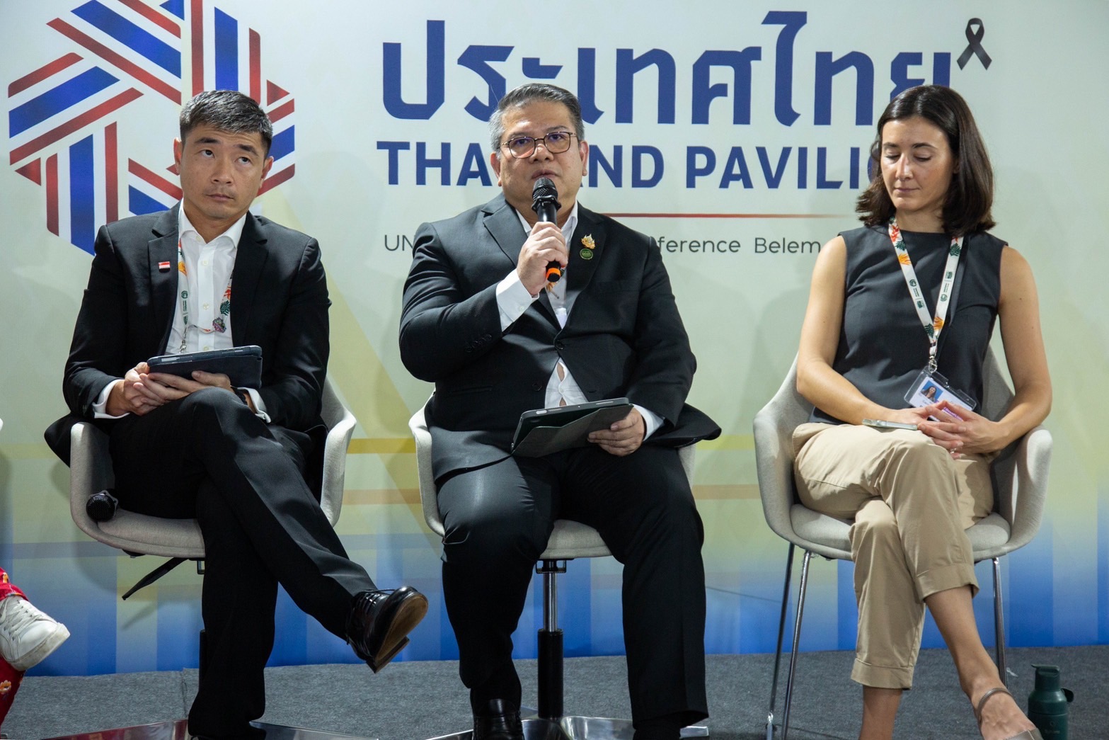 โดยนายปวิช เกศววงศ์ รองอธิบดีกรมการเปลี่ยนแปลงสภาพภูมิอากาศและสิ่งแวดล้อม และผู้ทรงคุณวุฒิที่หลากหลายสาขา ร่วมเสวนาแสดงถึงความสำคัญของป่าไม้เขตร้อนที่สำคัญต่อการบรรเทาและบรรลุเป้าหมายการปรับตัว ความมั่นคงทางน้ำที่สำคัญอย่างยิ่งต่อมวลมนุษยชาติ ระบบตลาดคาร์บอนในภูมิภาคอาเซียน ยึดหลักความโปร่งใสและความน่าเชื่อถือสูง เชื่อมโยงกับตลาดคาร์บอนระดับโลก ปิดท้ายด้วยการเข้าถึงแหล่งเงินทุนอย่างเป็นธรรมตัวช่วยสำคัญในการขับเคลื่อนนโยบายจากคำมั่นสัญญาสู่การลงมือปฏิบัติจริง.