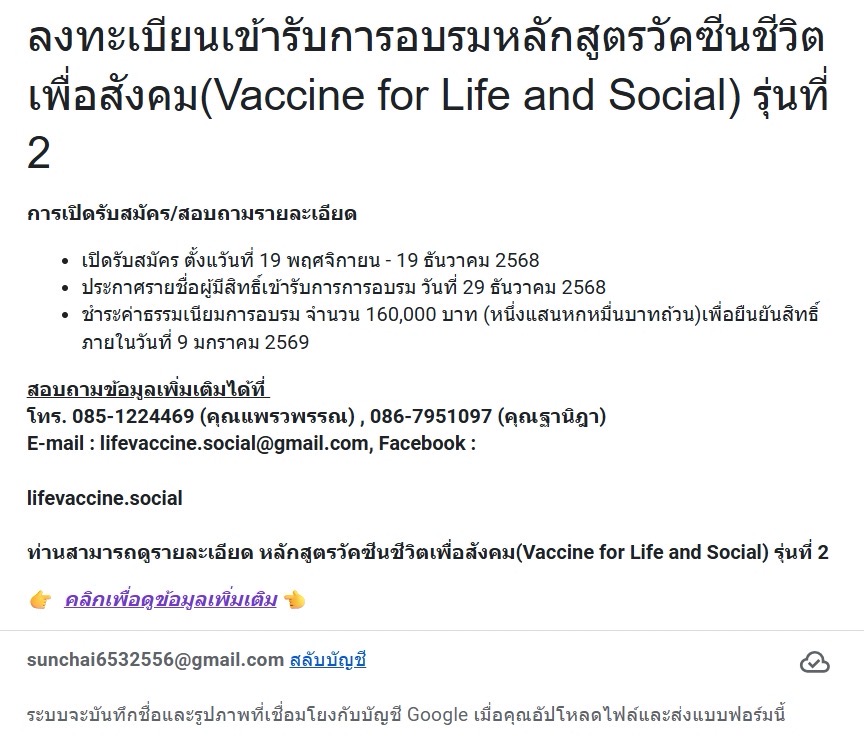 ด่วน หลักสูตรวัคชีนชีวิตเปิดรับสมัคร รุ่น2 แล้ว ตั้งแต่ 19 พ.ย ถึง 19 ธ.คนี้