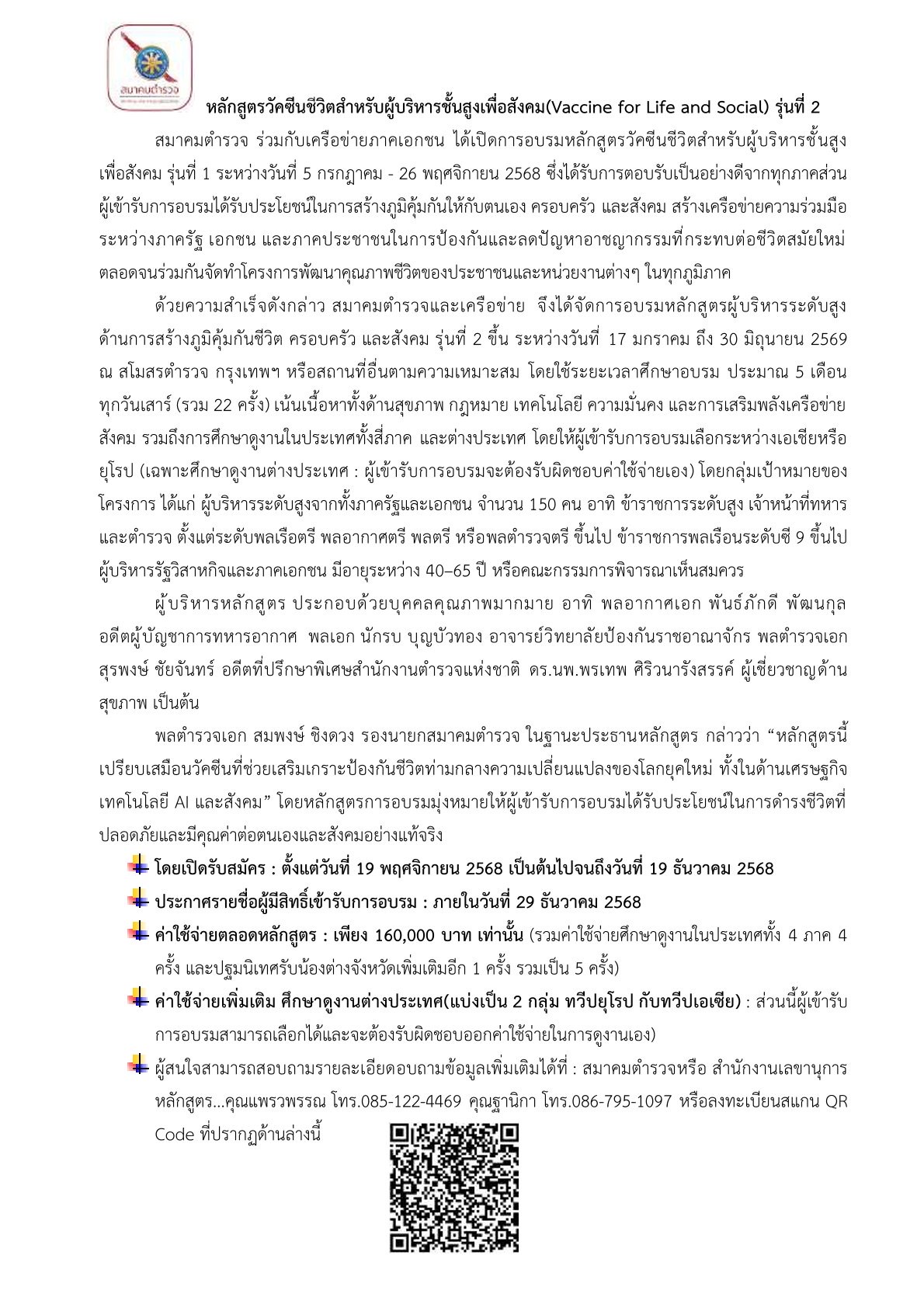 #หลักสูตรวัคซีนชิวิตสำหรับผู้บริหารชั้นสูงเพื่อสังคม รุ่นที่ 2 ของสมาคมตำรวจร่วมกับภาคเอกชน (Vaccine for Life and Social)