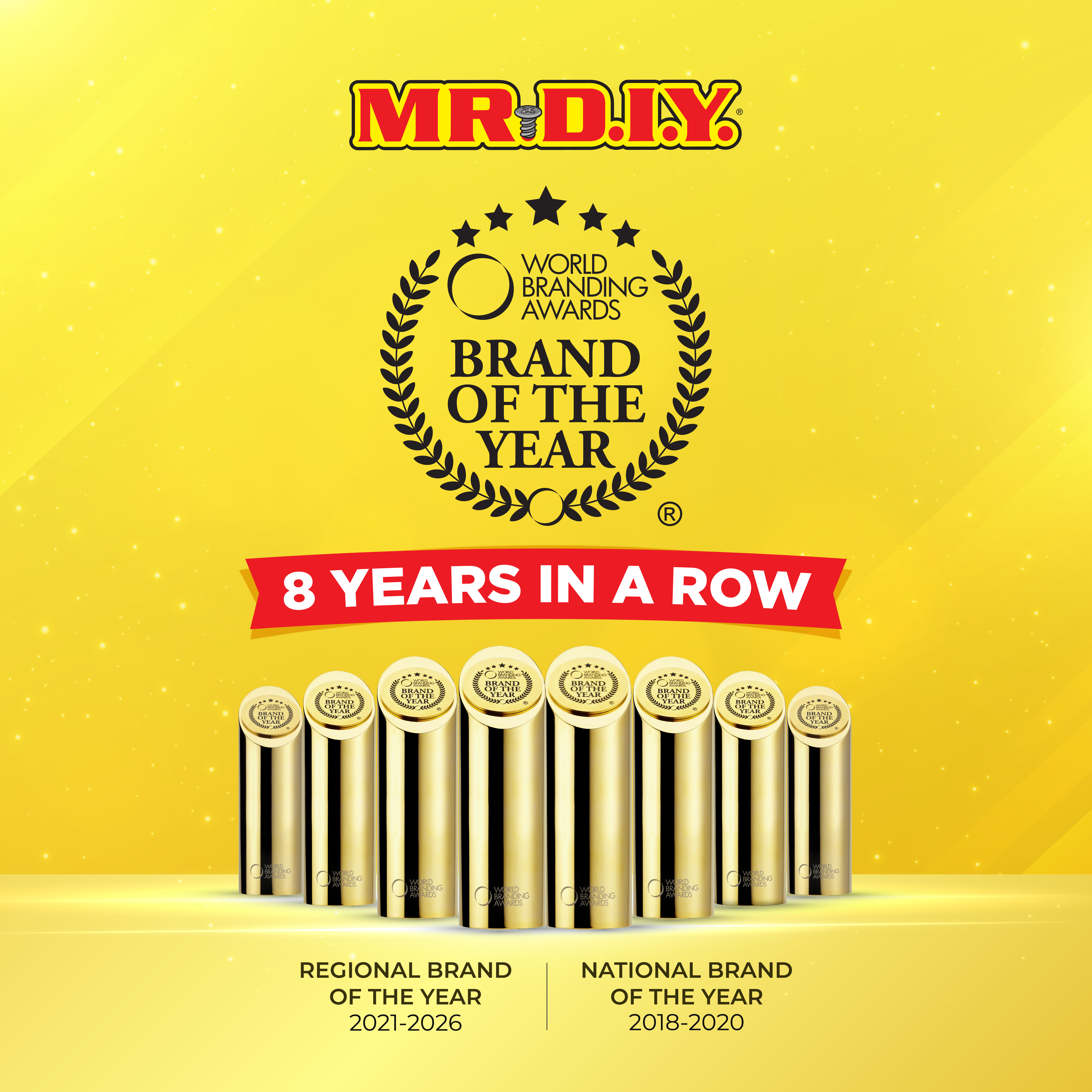 มิสเตอร์. ดี.ไอ.วาย. คว้ารางวัลต่อเนื่องเป็นปีที่ 8 ในงาน World Branding Awards จากการสนับสนุนของลูกค้าทั่วภูมิภาคและในประเทศไทย