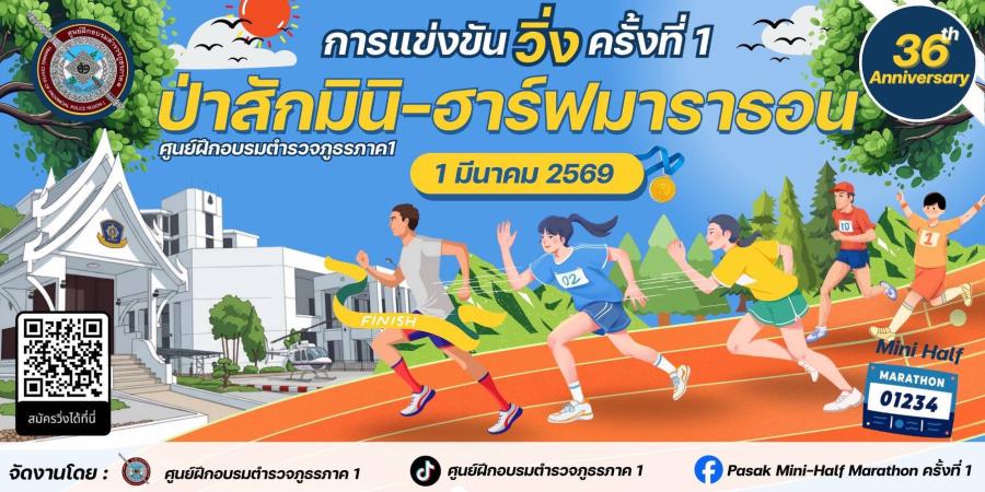 “ผู้การแก่น” พล.ต.ต.ธีร์ธวัต ธุระกิจ ผบก.ศฝร.ภ.1 เปิดเผยว่า ทางกองบังคับการเตรียมจัดโครงการวิ่งการกุศล ครั้งที่ 1 ภายใต้ชื่อ PASAK MINI HALF MARATHON 2026 บริเวณศูนย์ฝึกอบรมตำรวจภูธรภาค 1 จังหวัดสระบุรี