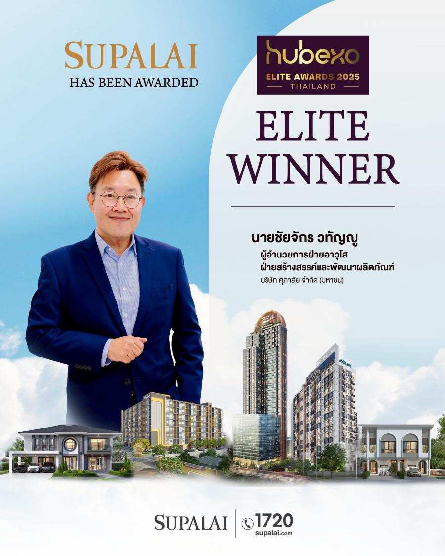 บริษัท ศุภาลัย จำกัด (มหาชน) ประกาศความภาคภูมิใจในความสำเร็จครั้งสำคัญ ด้วยการคว้ารางวัลเกียรติยศ “Elite Winner” จากเวที Hubexo Asia Awards 2025 งานประกาศรางวัลชั้นนำระดับภูมิภาคที่จัดขึ้นเพื่อเฉลิมฉลองครบรอบ 20 ปี แห่งการยกย่องความเป็นเลิศด้านสถาปัตยกรรมและการพัฒนาอสังหาริมทรัพย์ในเอเชีย