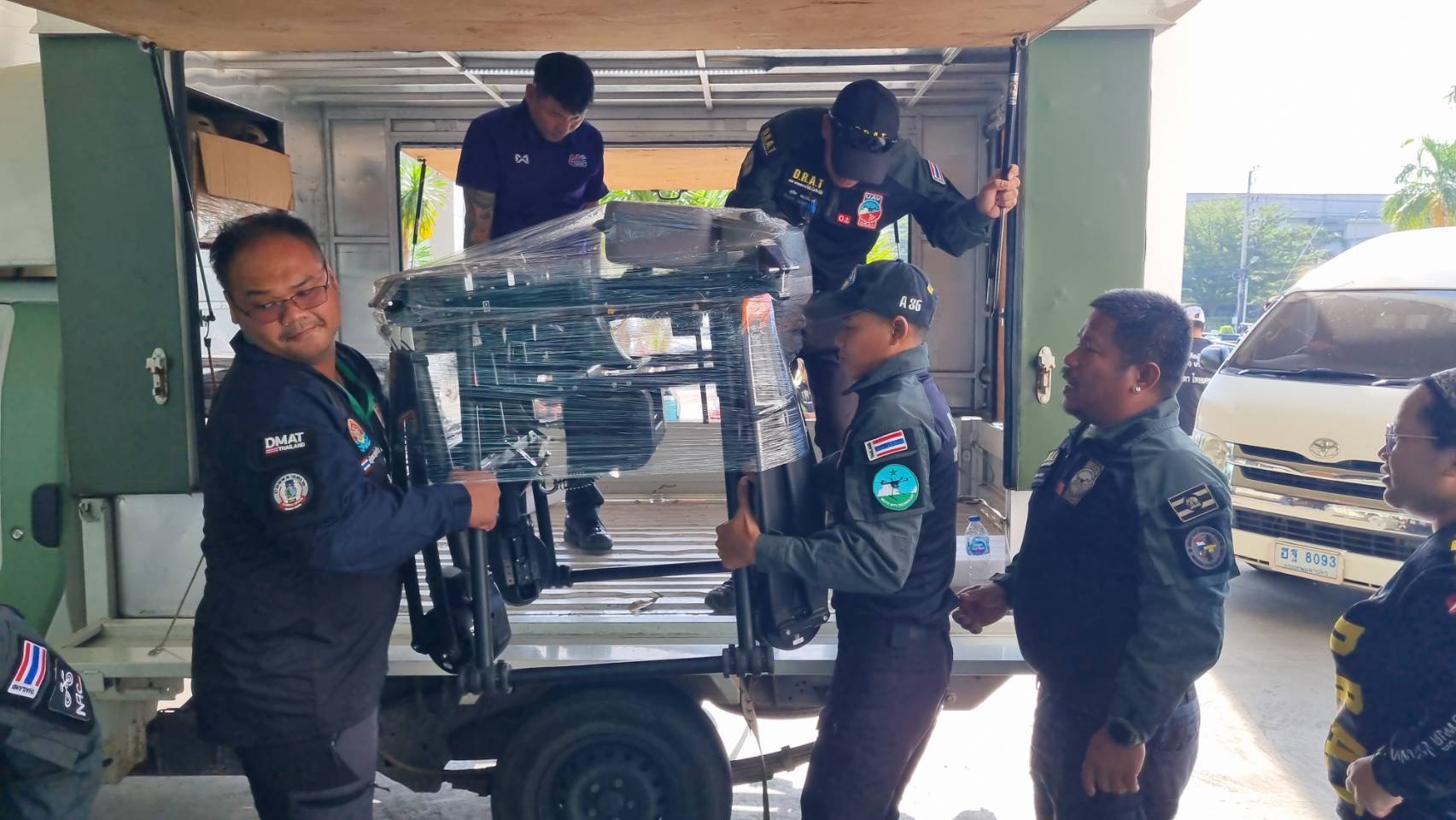 3. ทีม D.R.A.T. และศูนย์ตอบโต้ภัยพิบัติแห่งชาติ กำลังขนสิ่งของขึ้นเครื่องบิน กรมฝนหลวง