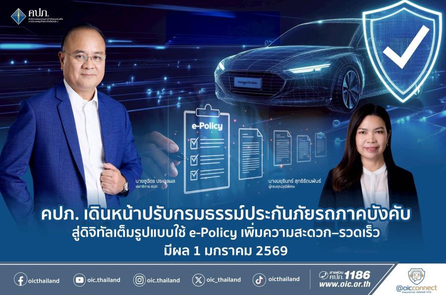คปภ. เดินหน้าปรับกรมธรรม์ประกันภัยรถภาคบังคับสู่ดิจิทัลเต็มรูปแบบ ใช้ e-Policy เพิ่มความสะดวก–รวดเร็ว มีผล 1 มกราคม 2569