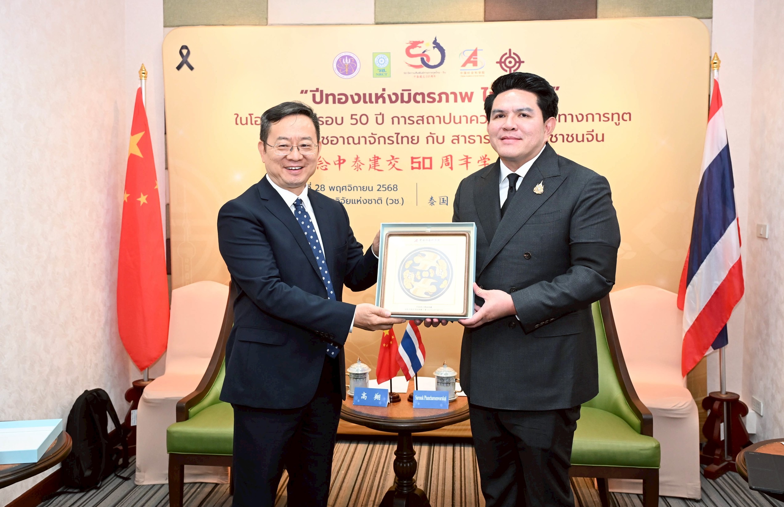 เมื่อวันที่ 28 พ.ย. นายสุรศักดิ์ พันธ์เจริญวรกุล รัฐมนตรีว่าการกระทรวงการอุดมศึกษา วิทยาศาสตร์ วิจัยและนวัตกรรม (อว.) เป็นประธานเปิดงาน “ปีทองแห่งมิตรภาพ ไทย–จีน” เนื่องในโอกาสครบรอบ 50 ปี การสถาปนาความสัมพันธ์ทางการทูตระหว่างประเทศไทยและสาธารณรัฐประชาชนจีน พร้อมกล่าวปาฐกถาพิเศษในหัวข้อ “ไทย–จีน สานพลังขับเคลื่อนอนาคตด้วยวิทยาศาสตร์ วิจัย และนวัตกรรม” โดยมี ศ.เกา เสียง ประธานสถาบันสังคมศาสตร์จีน (CASS) เป็นประธานร่วมเปิดงาน และมี ดร. วิภารัตน์ ดีอ่อง ผู้อำนวยการสำนักงานการวิจัยแห่งชาติ คณะผู้บริหารสำนักงานการวิจัยแห่งชาติ ข้าราชการ และเจ้าหน้าที่ เข้าร่วม ณ สำนักงานการวิจัยแห่งชาติ