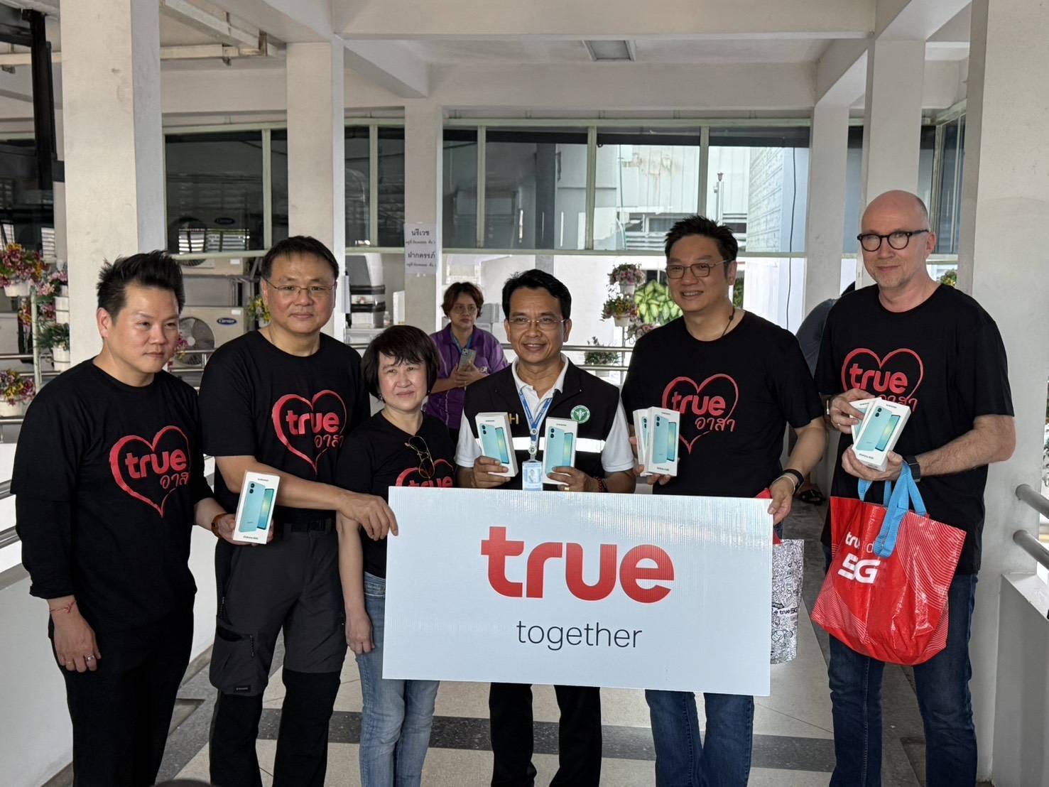 เสริมกำลังนักรบชุดขาว ร.พ.หาดใหญ่ท่ามกลางภารกิจอันหนักหน่วงของแพทย์และบุคลากรทางการแพทย์ในพื้นที่น้ำท่วม คณะผู้บริหารทรู ได้เดินทางไปยัง ร.พ.หาดใหญ่ ส่งมอบสมาร์ทโฟน 12 เครื่องสำหรับใช้เป็นอุปกรณ์สื่อสารหลักในการประสานงานด้านการแพทย์ ทั้งภายในโรงพยาบาลและกับหน่วยงานต่าง ๆ เพื่อให้การดูแลผู้ป่วยเป็นไปอย่างรวดเร็วไร้รอยต่อ นอกจากนี้ ทรู ยังจัดบูธทรูคอฟฟี่ มอบเครื่องดื่มหลากหลายเมนูกว่า 10,000 แก้ว ตลอด 10 วัน เพื่อเติมพลังใจและความสดชื่นให้ทีมแพทย์ พยาบาล และเจ้าหน้าที่สาธารณสุขทุกคนที่ยืนหยัดดูแลสุขภาพทั้งกายและใจให้ประชาชนตลอดช่วงเวลาอันยากลำบากนี้
