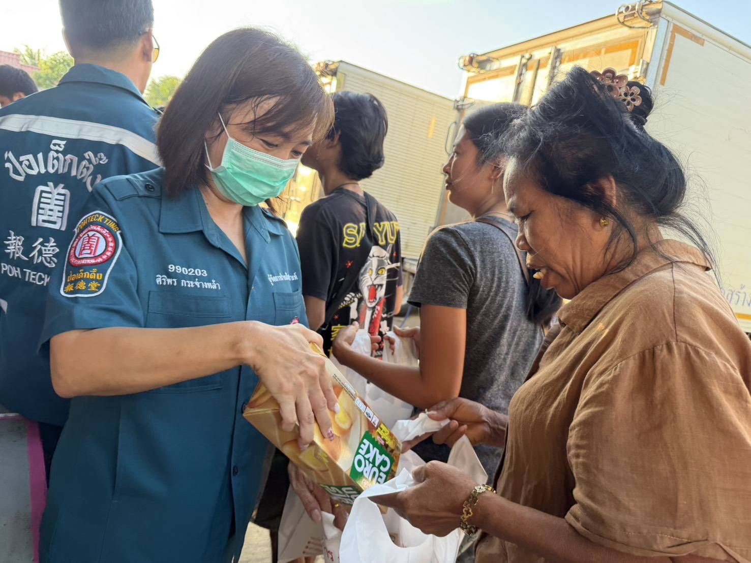 สำหรับการแจกจ่ายเครื่องอุปโภคบริโภคในพื้นที่จังหวัดสงขลา นางศิริพร กระจ่างหล้า ผู้จัดการฝ่ายสังคมสงเคราะห์ นำทีมสังคมสงเคราะห์ พร้อมทีมบรรเทาสาธารณภัย ฝ่ายปฏิบัติการ (คาราวานป่อเต็กตึ๊ง ส่งต่อธารน้ำใจ สาย 1) ได้ยกทัพเครื่องอุปโภคบริโภคบรรทุกรถเทรลเลอร์ 4 คัน ลงพื้นที่ตั้งแต่วันอาทิตย์ที่ 30 พฤศจิกายน 2568 ที่ผ่านมา โดยได้เร่งแจกจ่ายเครื่องอุปโภคบริโภคให้กับผู้ประสบภัยในพื้นที่ อาทิ ตำบลหาดใหญ่ ตำบลบ้านไร่ ตำบลควนลัง ตำบลระโนด จังหวัดสงขลา แล้วกว่า 2,900 ชุด