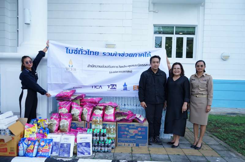 ดร. ศุภวรรณ ตีระรัตน์ ผู้อำนวยการสำนักงานส่งเสริมการจัดประชุมและนิทรรศการ (องค์การมหาชน) หรือ ทีเส็บ กล่าวว่าพื้นที่ 10 จังหวัดภาคใต้ที่ประสบอุทกภัย โดยเฉพาะอำเภอหาดใหญ่ จังหวัดสงขลาที่มีความรุนแรงระดับภัยพิบัติ ได้กระทบต่อชีวิตความเป็นอยู่ กิจกรรมทางเศรษฐกิจ รวมถึงอุตสาหกรรมไมซ์โดยตรง ในช่วงปลายเดือนพฤศจิกายน ทีเส็บจึงได้เร่งมาตรการช่วยเหลือฉุกเฉิน โดยเปิดบัญชีภายในองค์กรเพื่อรับบริจาคและให้ความช่วยเหลือผู้ประสบภัย นอกจากนี้ ผู้อำนวยการสำนักงานทีเส็บภาคใต้พร้อมคณะทำงานได้ลงพื้นที่ตรวจสอบสถานการณ์ ประเมินผลกระทบต่ออุตสาหกรรมไมซ์ และประสานหน่วยงานภาครัฐ เอกชน และพันธมิตร อาทิ สมาคมส่งเสริมการประชุมนานาชาติ (ไทย), สมาคมการแสดงสินค้า (ไทย), สมาคมโรงแรมไทย, สมาคมธุรกิจสร้างสรรค์การจัดงาน ในการให้ความช่วยเหลือผู้ประสบภัยรวมถึงบุคลากรในอุตสาหกรรมไมซ์ รวมทั้งได้ประสานความช่วยเหลือคณะนักเดินทางไมซ์จากประเทศมาเลเซียจำนวน 15 คน อพยพออกจากพื้นที่ได้อย่างปลอดภัย
