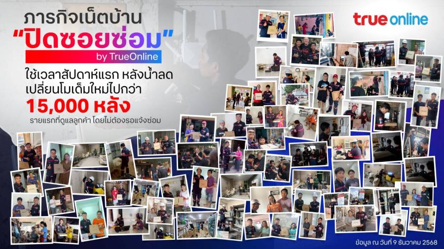 สงขลา , 9 ธันวาคม 2568 — ทรูออนไลน์เดินหน้าภารกิจ “ปิดซอยซ่อม” อย่างต่อเนื่องทันทีตั้งแต่วันแรกที่ระดับน้ำเริ่มลด เพื่อเร่งฟื้นฟูโครงข่ายอินเทอร์เน็ตบ้านของลูกค้าในพื้นที่หาดใหญ่ให้กลับมาใช้งานได้เร็วที่สุด ทีมช่างระดมกำลังจากหลายจังหวัดทั่วประเทศลงพื้นที่เชิงรุก เปลี่ยนโมเด็มใหม่ให้ลูกค้าโดยไม่ต้องรอการแจ้งซ่อม พร้อมตรวจสอบจุดเสียหายทุกพื้นที่ที่ได้รับผลกระทบจากอุทกภัยครั้งนี้ โดยใช้เวลาสัปดาห์แรก หลังน้ำลดเปลี่ยนโมเด็มไปแล้วกว่า 15,000 หลัง เพื่อให้ลูกค้าในพื้นที่ประสบภัยกลับมาดำเนินชีวิตสามารถออนไลน์ได้ตามปกติโดยเร็ว และขอแจ้งลูกค้าที่สมัครบริการทรูออนไลน์พร้อมแพ็กเกจประกันภัยบ้านว่า สามารถยื่น