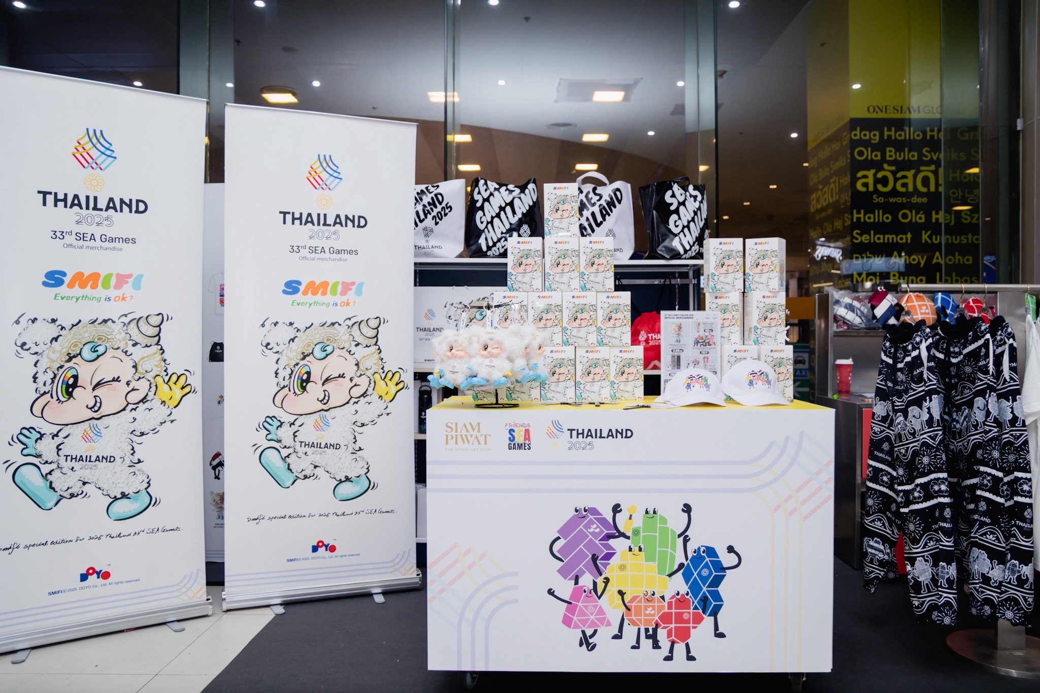 ชวนคนไทย เชียร์ทีมไทย ที่เมืองไทย และเชิญให้ทุกคนได้ร่วมเป็นส่วนหนึ่งของความประทับใจในมหกรรมกีฬาซีเกมส์ 2025 พร้อมกันนี้สามารถเลือกซื้อสินค้าที่ระลึกจากมหกรรมซีเกมส์ Sawasdee SEA GAMES 2025 มีให้เลือกชมและช้อปมากมาย อาทิ พวงกุญแจ Smifi เสื้อยืด กางเกง กระเป๋า Tumbler ฯลฯ ที่บู๊ทจำหน่ายสินค้าอย่างเป็นทางการ ได้ตั้งแต่วันนี้จนถึง 20 ธันวาคม 2568 ณ บริเวณทางเข้าชั้น G (ประตูสตาร์บัคส์) สยามพารากอน, ชั้น M สยามเซ็นเตอร์, ชั้น M สยามดิสคัฟเวอรี่(บริเวณทางเชื่อมลานใบบัว), และ ชั้น 1 ไอคอนสยาม โดยได้รับการสนับสนุนจาก การกีฬาแห่งประเทศไทย (กกท.)