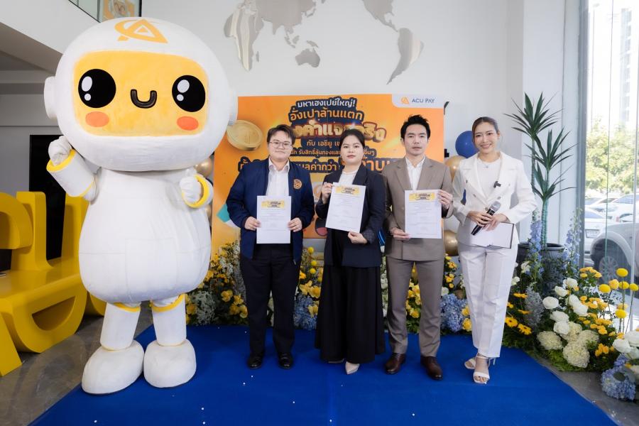 ล่าสุด ในงานจับรางวัลผู้โชคดี แคมเปญ มหาเฮงเปย์ใหญ่! อั่งเปาล้านแตกทองคำแจกจริง กับ ACU PAY ครั้งที่ 2 ที่จัดขึ้น ณ สำนักงานใหญ่ ACU PAY (Thailand) ถ.รัชดาภิเษก เมื่อเร็ว ๆ นี้ โดยนางสาวหยาง หยวนหยวน (Caro) ประธานบริษัท เอซียู เพย์ (ไทยแลนด์) จำกัด และนายรองนะรงค์ ศศิพงศ์พรรณ กรรมการบริษัท / CEO บริษัท เอซียู เพย์ (ไทยแลนด์) จำกัด เป็นผู้จับรางวัล และได้รับเกียรติจาก คุณกฤษฎิ์ณิชา ไชยเสนบดินทร์ เจ้าพนักงานปกครองชำนาญการกรมการปกครอง กระทรวงมหาดไทย มาร่วมเป็นสักขีพยานในครั้งนี้