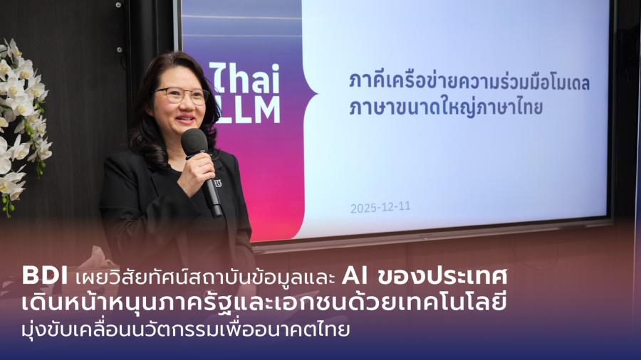 11 ธันวาคม 2568, กรุงเทพฯ – สถาบันข้อมูลขนาดใหญ่ (องค์การมหาชน) หรือ BDI เผย ทิศทางการขับเคลื่อนประเทศด้วยข้อมูลและปัญญาประดิษฐ์ เดินหน้าแผนงานปี 2569 ผ่านแพลตฟอร์มเชื่อมโยงข้อมูลระดับชาติ (D2) และโครงการปัญญาประดิษฐ์ภาษาไทย ThaiLLM พร้อมยกระดับภาครัฐ-เอกชนด้วยข้อมูลที่เชื่อมโยง รองรับการวิเคราะห์ที่แม่นยำ และตอบสนองสถานการณ์วิกฤตได้ทันท่วงที ตลอดจนผลักดันนวัตกรรม AI และการพัฒนาทักษะดิจิทัลให้ประชาชนเข้าถึงได้อย่างเท่าเทียม สะท้อนบทบาทของ BDI ในฐานะองค์กรกลางที่เสริมพลังภาครัฐและขับเคลื่อนอนาคตประเทศไทยด้วยเทคโนโลยีสมัยใหม่