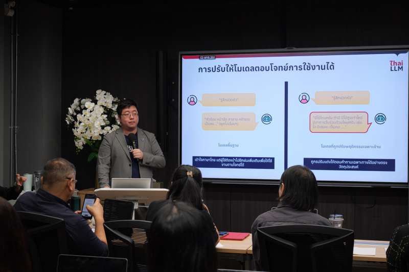 ศ. ดร.ธีรณี กล่าวเพิ่มเติม ถึงความก้าวหน้าของโครงการ ThaiLLM ซึ่งเป็นโครงสร้างพื้นฐานปัญญาประดิษฐ์ภาษาไทยแบบ Open Source / Open License โดยล่าสุดได้เผยแพร่โมเดลพื้นฐานขนาด 8B พารามิเตอร์ และโมเดลขนาด 30B พารามิเตอร์ ที่อัปโหลดเพิ่มเติมเมื่อสัปดาห์ที่ผ่านมา ส่วนโมเดลขนาดใหญ่ที่สุดจะเปิดให้สาธารณะเข้าถึงภายในเดือนมกราคม 2569 โมเดลเหล่านี้ได้รับการฝึกด้วยข้อมูลจากหน่วยงานภาครัฐและภาคเอกชนที่ร่วมสนับสนุนการพัฒนา นับเป็นก้าวสำคัญในการยกระดับระบบนิเวศ AI ภาษาไทย ให้สามารถนำไปต่อยอดใช้งานในหลากหลายสาขา ขณะนี้มีหลายทีมเริ่มทดลองใช้งาน และคาดว่าจะเห็นผลลัพธ์รูปธรรมในเร็ว ๆ นี้