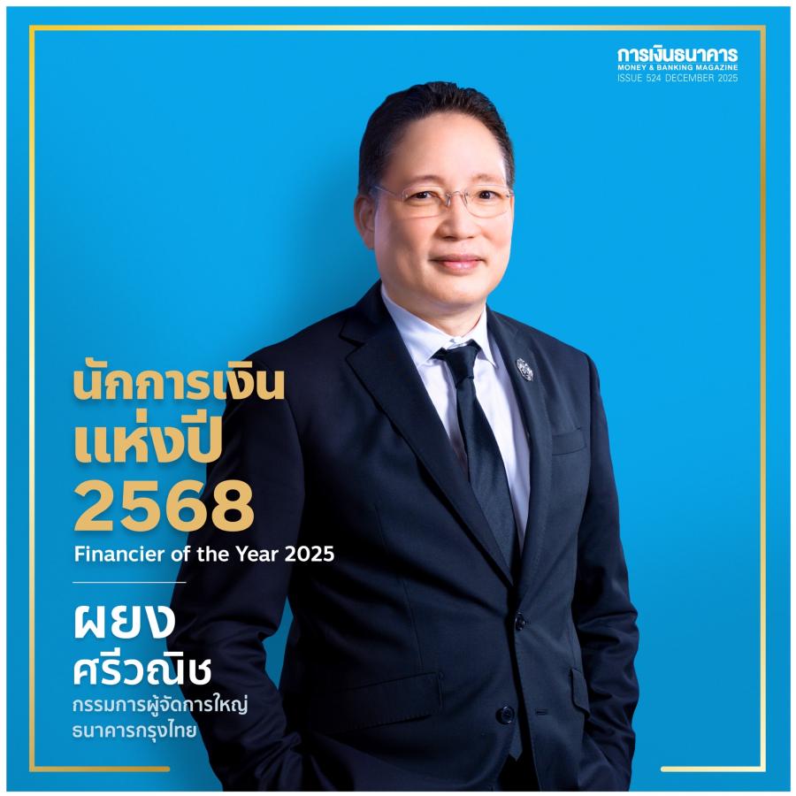 วารสารการเงินธนาคาร ประกาศรางวัล “นักการเงินแห่งปี 2568 Financier of the Year 2025” ให้กับ นายผยง ศรีวณิช กรรมการผู้จัดการใหญ่ ธนาคารกรุงไทย จำกัด (มหาชน) ด้วยคุณสมบัติของการเป็นนักการเงินแห่งปีครบถ้วนตามหลักเกณฑ์การพิจารณาทั้ง 4 ด้าน เป็นนักการเงินมืออาชีพที่มีวิสัยทัศน์กว้างไกลและทันสมัย มีความซื่อสัตย์ต่อวิชาชีพ สร้างความเติบโตยั่งยืนให้กับองค์กร รับผิดชอบต่อสังคมและทำคุณประโยชน์ต่อส่วนรวม