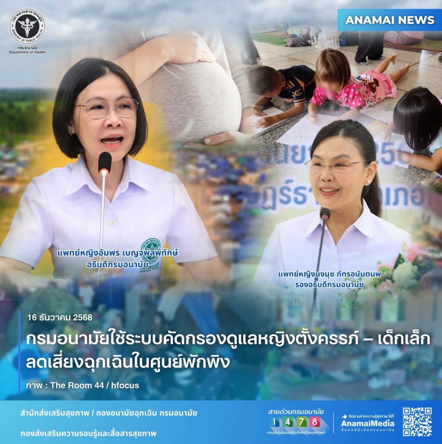 แพทย์หญิงอัมพร เบญจพลพิทักษ์ อธิบดีกรมอนามัย เปิดเผย ว่า จากสถานการณ์ชายแดนไทย-กัมพูชา ขณะนี้ มีผู้เข้าพักในศูนย์พักพิงเขตสุขภาพที่ 9 จำนวน 98,687 คน ซึ่งส่วนใหญ่เป็นกลุ่มเปราะบาง โดยเฉพาะหญิงตั้งครรภ์ จำนวน 127 คน และเด็กเล็ก จำนวน 6,593 คน ที่ต้องเฝ้าระวังเป็นพิเศษ ดังนั้น แนวทางการดูแลหญิงตั้งครรภ์และเด็กปฐมวัยในศูนย์พักพิง ให้คัดกรองตั้งแต่แรกเข้า โดยแยกหญิงตั้งครรภ์เสี่ยงสูง และเสี่ยงต่ำ พร้อมแบ่งระดับความรุนแรง เพื่อให้เกิดการส่งต่อผู้ป่วยอย่างทันท่วงที ลดความเสี่ยงต่อภาวะแทรกซ้อนที่อาจเป็นอันตรายต่อแม่และเด็ก แบ่งระดับความเสี่ยงออกเป็น 4 กลุ่ม ได้แก่ ปกติ-สีเขียว เฝ้าระวัง-สีเหลือง เสี่ยงสูง-สีส้ม และฉุกเฉินวิกฤต-สีแดง อาการสำคัญของกลุ่มสีแดง เช่น เจ็บครรภ์ น้ำเดิน เลือดออก ความดันโลหิตสูงร่วมอาการรุนแรง ชัก หมดสติ หรือทารกดิ้นน้อยลง จะต้องส่งโรงพยาบาลและรับไว้รักษาทันที ขณะที่กลุ่มสีส้มควรพิจารณาส่งโรงพยาบาลเพื่อเฝ้าระวังอย่างใกล้ชิด ไม่ควรพักอาศัยในศูนย์พักพิง สำหรับกลุ่มสีเหลือง และกลุ่มสีเขียว ให้การจัดบริการ Mobile ANC หรือการฝากครรภ์เคลื่อนที่ โดยติดตามทุก 2–4 สัปดาห์ ด้วยการวัดสัญญาณชีพ ชั่งน้ำหนัก ตรวจสุขภาพจิต ประเมินการเจริญเติบโตของทารกและให้คำแนะนำสัญญาณอันตรายที่ต้องรีบไปโรงพยาบาลพร้อมเตรียมอุปกรณ์และระบบการแพทย์ทางไกล เพื่อปรึกษาสูติแพทย์ในกรณีจำเป็น หากพบเหตุฉุกเฉินในหญิงตั้งครรภ์ ให้แจ้งเจ้าหน้าที่สาธารณสุข รายงานหัวหน้าศูนย์พักพิง เรียกรถพยาบาล พร้อมประสานโรงพยาบาลปลายทางเพื่อนำส่ง