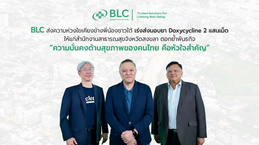 ภก.สุวิทย์ งามภูพันธ์ (ท่านกลาง) ประธานเจ้าหน้าที่บริหาร บริษัท บางกอกแล็ป แอนด์ คอสเมติค จำกัด (มหาชน) หรือ BLC พร้อมด้วยคณะผู้บริหารและพนักงาน ในฐานะบริษัทยาชั้นนำที่อยู่คู่คนไทยมายาวนาน ตระหนักดีว่าในยามวิกฤตการเข้าถึงยาที่จำเป็นอย่างทันท่วงที คือสิ่งที่รอช้าไม่ได้ ด้วยความห่วงใยที่มีต่อพี่น้องชาวอำเภอหาดใหญ่รวมถึงพื้นที่อำเภออื่นๆ ในจังหวัดสงขลา บริษัทฯ ได้ดำเนินการจัดส่งยา Doxycycline จำนวน 200,000 เม็ด แบบเร่งด่วนที่สุด ให้กับสำนักงานสาธารณสุขจังหวัดสงขลา (สสจ.สงขลา) เป็นที่เรียบร้อยแล้ว เพื่อเข้าสู่ระบบสาธารณสุข ให้เจ้าหน้าที่ด่านหน้าสามารถนำไปดูแลรักษาและแจกจ่ายแก่ประชาชนในพื้นที่เสี่ยงได้ทันที ซึ่งยา Doxycycline ถือเป็นปราการด่านสำคัญในการป้องกันและรักษาโรคฉี่หนู (Leptospirosis) ภัยเงียบที่มักระบาดรุนแรงในช่วงน้ำท่วมขังและหลังน้ำลด โดยภารกิจในครั้งนี้ เป็นเครื่องยืนยันเจตนารมณ์ของ BLC และบริษัทในเครือ ที่พร้อมทำหน้าที่เป็น “เสาหลักด้านยา” (Drug Security) เพื่อดูแลคนไทยในทุกวิกฤต และตอกย้ำพันธกิจหลักในการมุ่งสร้างความมั่นคงด้านสุขภาพของคนไทยอย่างยั่งยืน ทั้งนี้ BLC ขอส่งกำลังใจให้แก่ผู้ประสบภัยทุกครอบครัว รวมถึงเจ้าหน้าที่และบุคลากรทางการแพทย์ทุกท่านที่เสียสละทำงานอย่างหนัก ท่ามกลางวิกฤตอุทกภัยที่ส่งผลกระทบต่อพี่น้องชาวใต้ เราเชื่อมั่นว่าด้วยความร่วมมือและกำลังใจที่ส่งถึงกัน เราจะผ่านพ้นเหตุการณ์นี้ไปได้ และกลับมามีสุขภาพที่แข็งแรง ปลอดภัย ไปด้วยกัน
