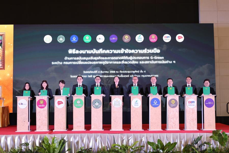 นางศิริพร เลิศสัตยสุกใส รองผู้อำนวยการธนาคารออมสิน ร่วมลงนามบันทึกความเข้าใจความร่วมมือด้านการสนับสนุนเชิงธุรกิจและการตลาดให้กับผู้ประกอบการ G – Green กับกรมการเปลี่ยนแปลงสภาพภูมิอากาศและสิ่งแวดล้อม โดยมี ดร. พิรุณ สัยยะสิทธิ์พานิช อธิบดีกรมการเปลี่ยนแปลงสภาพภูมิอากาศและสิ่งแวดล้อม เป็นผู้ลงนาม พร้อมด้วยผู้บริหารจากสถาบันการเงินรวม 8 หน่วยงาน และมี ดร.ชญานันท์ ภักดีจิตต์ ปลัดกระทรวงทรัพยากรธรรมชาติและสิ่งแวดล้อม ร่วมเป็นเกียรติและสักขีพยาน เพื่อส่งเสริมการเปลี่ยนผ่านของภาคธุรกิจสู่เศรษฐกิจสีเขียว สนับสนุนการดำเนินธุรกิจที่เป็นมิตรต่อสิ่งแวดล้อม ควบคู่กับการสร้างความตระหนักให้ผู้บริโภคหันมาใส่ใจสินค้าและบริการที่มีความรับผิดชอบต่อสิ่งแวดล้อมและสังคมให้มากขึ้น อันจะนำไปสู่การขยายฐานธุรกิจสีเขียวและการขับเคลื่อนเศรษฐกิจและสังคมคาร์บอนต่ำของประเทศ