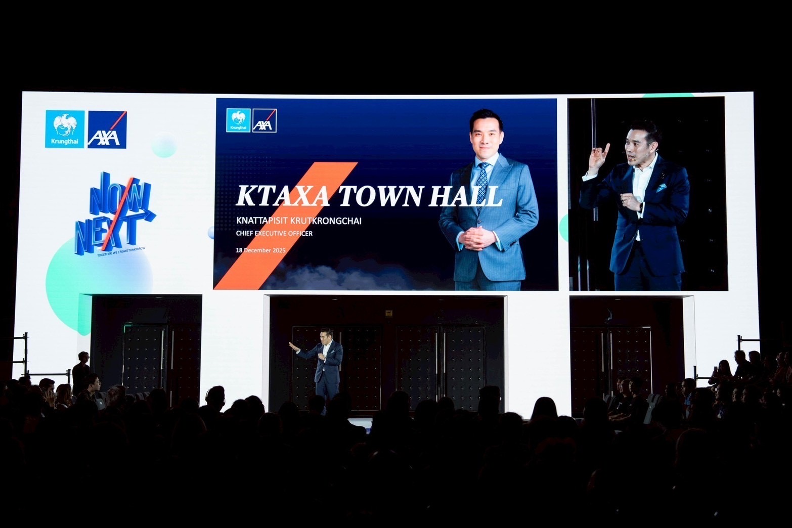 บมจ.กรุงไทย-แอกซ่า ประกันชีวิต ส่งท้ายปีอย่างยิ่งใหญ่ จัดงาน NOW/NEXT 2025 Wrap-up Townhall นำโดย คุณณัฐพิสิษฐ์ ครุฑครองชัย ประธานเจ้าหน้าที่บริหาร (จากขวา คนที่ 3 ) พร้อมด้วยคณะผู้บริหารระดับสูง เพื่อเป็นเวทีสะท้อนภาพแห่งความสำเร็จตลอดปี 2025 โดยภายในงานเป็นการสรุปผลดำเนินงานประจำปี ที่เติบโตอย่างแข็งแกร่ง สอดรับกับกลยุทธ์ Bigger and Bolder พร้อมทั้งผู้บริหารระดับสูงยังได้ประกาศกลยุทธ์ให้แก่พนักงาน และสร้างพลังความพร้อมในการก้าวสู่ปี 2026 เพื่อให้บริษัทฯ เติบโตอย่างแข็งแกร่งยิ่งขึ้น