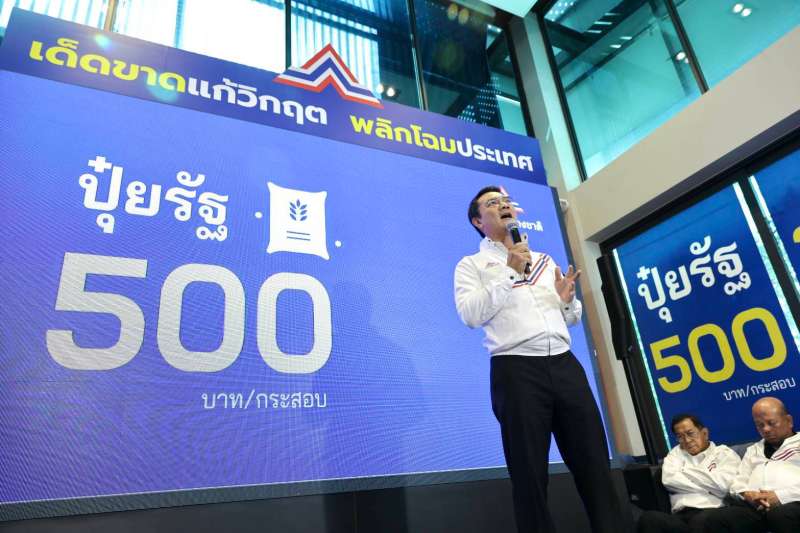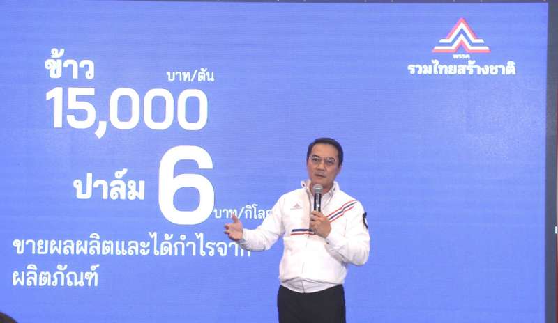 ข้าว 15,000 บาท/ตัน ปาล์ม 6 บาท/กก. : ด้วยระบบแบ่งปันผลกำไร (70:30) โดยใช้โมเดลความสำเร็จจากธุรกิจอ้อยและน้ำตาลทราย เกษตรกรขายข้าวเปลือกหรือผลปาล์มแล้ว ยังได้กำไรจากสินค้าที่แปรรูปเป็นข้าวสารและน้ำมันปาล์มด้วย ด้วยนโยบายนี้จะทำให้ราคาข้าวสูงถึง 15,000 บาท/ตัน และปาล์ม 6 บาท/กก.