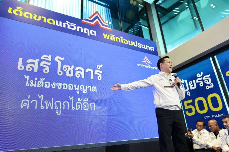 เสรีโซลาร์ ประชาชนผลิตไฟใช้เอง ไม่ต้องขอใบอนุญาต : ห้ามรัฐยืนบังแดดประชาชน ช่วยประชาชนได้ไฟถูก และเป็นกุญแจสำคัญในการดึงดูดอุตสาหกรรมใหม่ New S-Curve อาทิ คลาวด์ - คลังข้อมูล (Data Center) การผลิตเซมิคอนดักเตอร์ ชิบขนาดเล็ก ธุรกิจใหม่เหล่านี้โดนบังคับให้ต้องใช้พลังงานสะอาด 100% ก็จะไม่ต้องมารอขออนุญาตอีก ง่ายต่อการเข้ามาลงทุนใหม่ ไม่ใช่ย่ำอยู่กับธุรกิจเดิมเท่านั้น นโยบายนี้จะทำให้ GDP พุ่งอย่างก้าวกระโดด ต้องใช้ความเด็ดขาด ”ทลายการผูกขาด” เพื่อเปิดโอกาสให้ประชาชนและอุตสาหกรรมใหม่ ไม่ใช้เอื้อกลุ่มทุนพลังงานอย่างเดียว