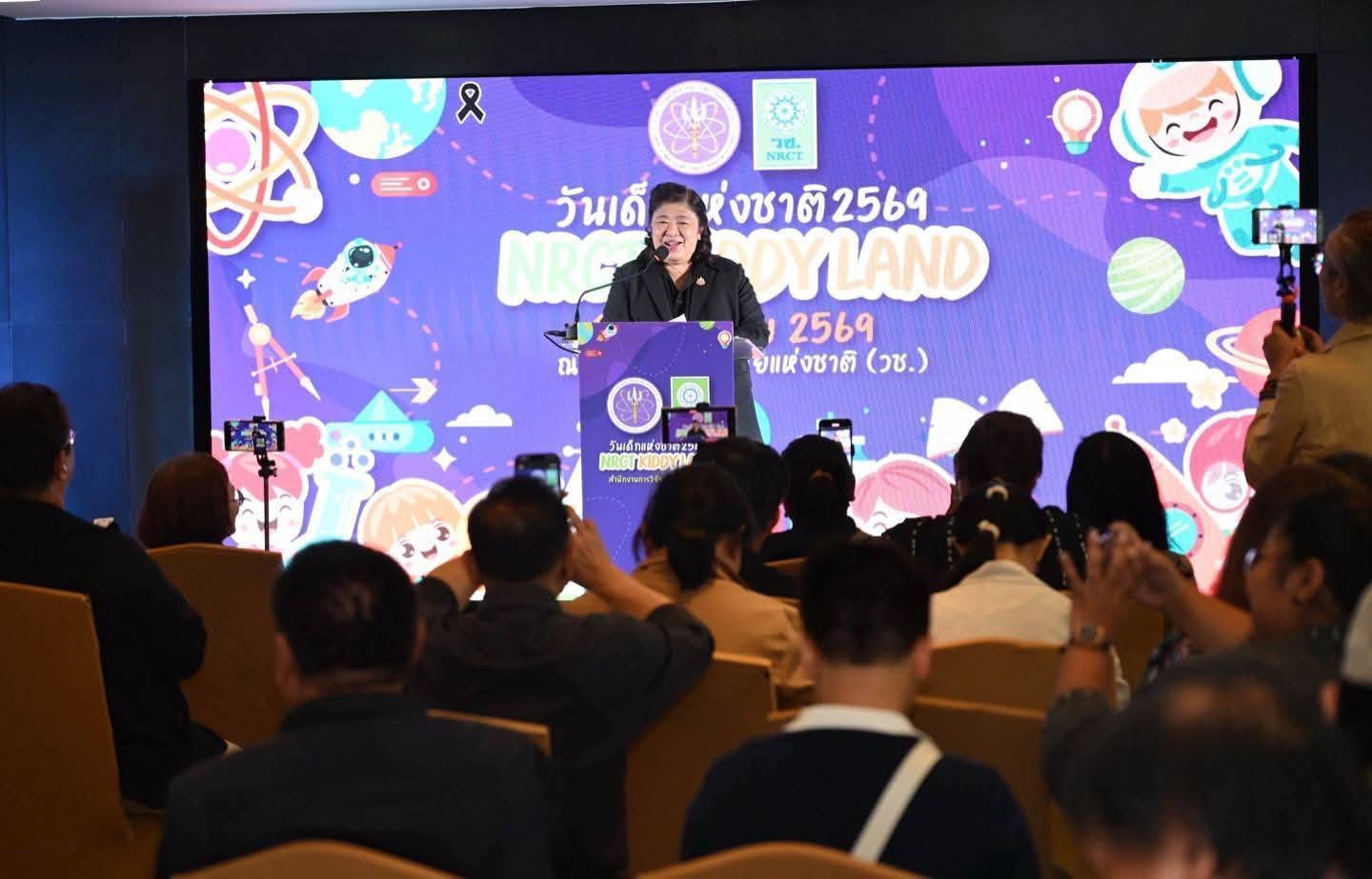 วันที่ 24 ธันวาคม 2568 สำนักงานการวิจัยแห่งชาติ(วช.) กระทรวงการอุดมศึกษา วิทยาศาสตร์ วิจัยและนวัตกรรม จัดงานแถลงข่าววันเด็กแห่งชาติ ประจำปี 2569 ภายใต้ชื่อ “NRCT KIDDY LAND” โดยมี ดร.วิภารัตน์ ดีอ่อง ผู้อำนวยการสำนักงานการวิจัยแห่งชาติ เป็นประธานในพิธีและกล่าวเปิดงาน เพื่อเตรียมความพร้อมและสร้างการรับรู้ถึงกิจกรรมวันเด็กแห่งชาติที่มุ่งส่งเสริมการเรียนรู้ด้านวิทยาศาสตร์ วิจัย และนวัตกรรมแก่เด็กและเยาวชนไทย ณ ศูนย์ข้อมูลสารสนเทศกลางด้านวิทยาศาสตร์ วิจัยและนวัตกรรมของประเทศ อาคาร วช. 8
