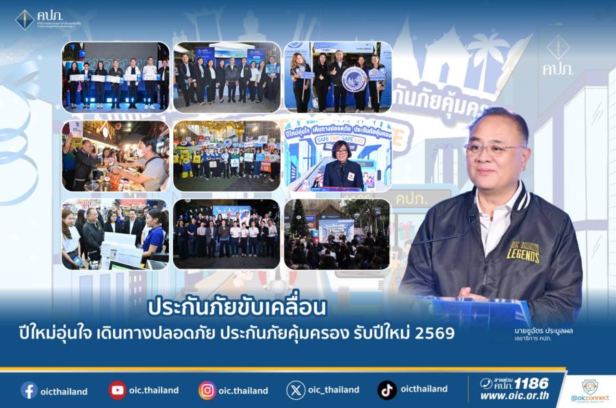 ในโอกาสเทศกาลปีใหม่ 2569 ที่กำลังจะมาถึงนี้ สำนักงาน คปภ. ขอส่งความปรารถนาดีไปยังประชาชนทุกคน ไม่ว่าจะเดินทางกลับภูมิลำเนา ท่องเที่ยว หรือใช้เวลาอยู่ร่วมกับครอบครัวและคนที่รัก ขอให้ทุกการเดินทางเป็นไปด้วยความปลอดภัย อุ่นใจ และมั่นใจ โดยมีการประกันภัยเป็นเครื่องมือสำคัญที่ช่วยบริหารความเสี่ยงในทุกเทศกาลสำคัญ เพื่อให้ช่วงเวลาดังกล่าวเป็นเทศกาลแห่งรอยยิ้ม ความอบอุ่น และความทรงจำที่ดีอย่างแท้จริง เลขาธิการ คปภ. กล่าวในตอนท้าย