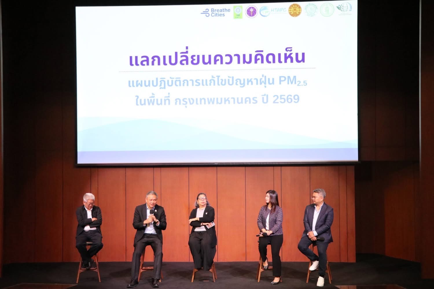 ช่วงท้ายของการประชุมเป็นเวทีแลกเปลี่ยนความคิดเห็นและข้อเสนอแนะต่อแผนปฏิบัติการแก้ไขปัญหาฝุ่น PM2.5 ในพื้นที่กรุงเทพมหานคร ปี 2569 โดย ดร.สุพัฒน์ หวังวงศ์วัฒนา ผู้อำนวยการศูนย์รวมผู้เชี่ยวชาญด้านมลพิษอากาศและภูมิอากาศ รองศาสตราจารย์ ดร.สาวิตรี การีเวทย์ มหาวิทยาลัยเทคโนโลยีพระจอมเกล้าธนบุรี รองศาสตราจารย์ ดร.สุรัตน์ บัวเลิศ รองศาสตราจารย์ ดร.ภาคภูมิ ชูมณี และผู้ช่วยศาสตราจารย์ ดร.ธัญภัสสร์ ทองเย็น คณะสิ่งแวดล้อม มหาวิทยาลัยเกษตรศาสตร์ ร่วมให้ข้อคิดเห็นและตอบข้อซักถาม พร้อมด้วย ดร.วีระศักดิ์ โควสุรัตน์ ประธานสภาลมหายใจกรุงเทพ และ ดร.เจน ชาญณรงค์ รองประธานสภาลมหายใจกรุงเทพ ในฐานะสภาลมหายใจกรุงเทพภาคประชาชน ร่วมให้ข้อคิดเห็นในครั้งนี้ และเปิดโอกาสให้หน่วยงานภาครัฐ นักวิชาการ และผู้มีส่วนเกี่ยวข้องร่วมสะท้อนมุมมอง เพื่อใช้เป็นข้อมูลประกอบการพัฒนาแผนให้สอดคล้องกับบริบทของกรุงเทพมหานคร และสามารถนำไปสู่การปฏิบัติได้จริง ภายหลังจากกรุงเทพมหานครได้รับการประกาศให้เป็น “เขตควบคุมมลพิษ” อย่างเป็นทางการ ซึ่งมีผลบังคับใช้ตั้งแต่วันที่ 17 กันยายน 2568 ตามมติคณะกรรมการสิ่งแวดล้อมแห่งชาติ อันจะช่วยเพิ่มประสิทธิภาพในการจัดการปัญหาฝุ่นละออง PM2.5 ที่ทวีความรุนแรงในช่วงฤดูหนาว ระหว่างเดือนพฤศจิกายนถึงเดือนมีนาคม