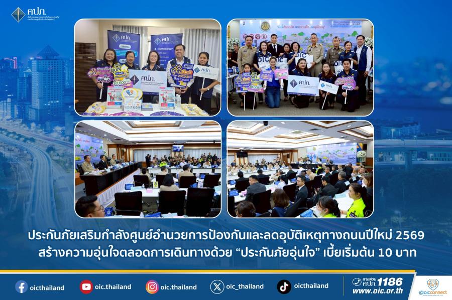 ประกันภัยเสริมกำลังศูนย์อำนวยการป้องกันและลดอุบัติเหตุทางถนนปีใหม่ 2569 สร้างความอุ่นใจตลอดการเดินทางด้วย “ประกันภัยอุ่นใจ” เบี้ยเริ่มต้น 10 บาท