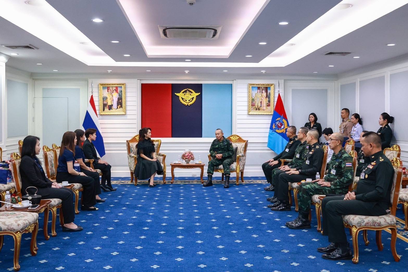 โดยมี พลเอก อุกฤษฎ์ บุญตานนท์ ผู้บัญชาการทหารสูงสุด (กลาง) พลเอก นพดล ปิ่นทอง รองผู้บัญชาการทหารสูงสุด (ที่ 4 จากขวา) พลเอก ชิดชนก นุชฉายา เสนาธิการทหาร (ที่ 3 จากขวา) พลเอก กิตติพงศ์ ชื่นใจชน รองเสนาธิการทหาร (ที่ 2 จากขวา) พลโท นนธวัฒน์ ภักดิพงศ์พิชญะ รองผู้บัญชาการหน่วยบัญชาการทหารพัฒนา (ขวาสุด) ให้เกียรติรับมอบ ณ ห้องรับรอง 12 อาคารกองบัญชาการกองทัพไทย เมื่อวันที่ 22 ธันวาคม 2568