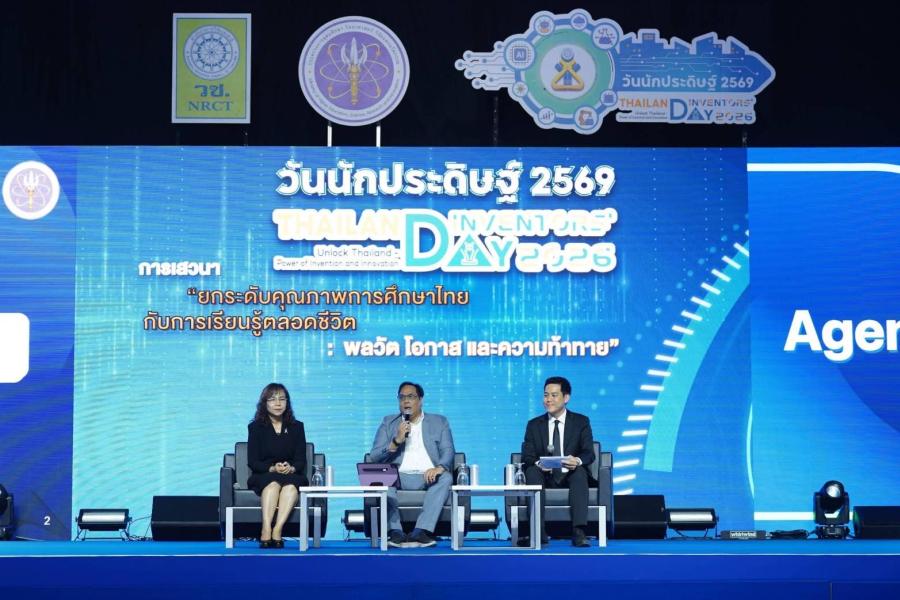 วันที่ 5 มกราคม 2568 สำนักงานการวิจัยแห่งชาติ (วช.) กระทรวงการอุดมศึกษา วิทยาศาสตร์ วิจัยและนวัตกรรม จัดการเสวนาในหัวข้อ เรื่อง “ยกระดับคุณภาพการศึกษาไทยกับการเรียนรู้ตลอดชีวิต: พลวัต โอกาส และความท้าทาย” ภายในงาน “วันนักประดิษฐ์” ประจำปี 2569 (Thailand Inventor’s Day 2026) โดยได้รับเกียรติจาก ดร.พันธุ์เพิ่มศักดิ์ อารุณี รองปลัดกระทรวงการอุดมศึกษา วิทยาศาสตร์ วิจัยและนวัตกรรม, ดร.รุ่งอรุณ ไสยโสภณ ผู้เชี่ยวชาญเฉพาะด้านส่งเสริมมาตรฐานการศึกษานอกโรงเรียน กรมส่งเสริมการเรียนรู้ ร่วมเสวนาในครั้งนี้ และดำเนินรายการโดย รองศาสตาจารย์ ดร.ณัฐดนัย หาญการสุจริต มหาวิทยาลัยเกษตรศาสตร์ ณ เวทีกลาง Event Hall 100 - 104 ศูนย์นิทรรศการและการประชุมไบเทค บางนา กรุงเทพมหานคร