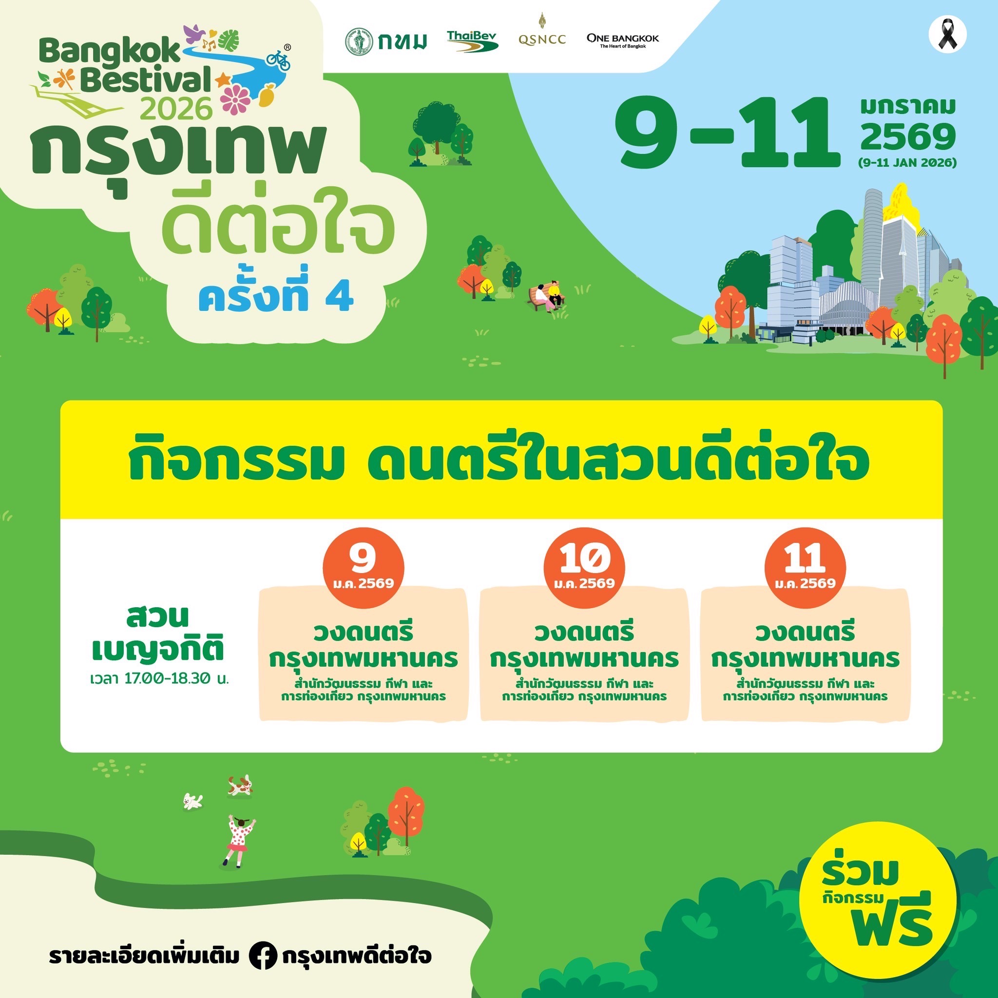 #กรุงเทพดีต่อใจ #BangkokBestival2026 #สุขแรกแห่งปี #สวนลุมพินี #สวนเบญจกิติ #อุทยานเบญจสิริ #สวนปทุมวนานุรักษ์ #กทม #ThaiBev #QSNCC #OneBangkok #SustainabilityExpo
