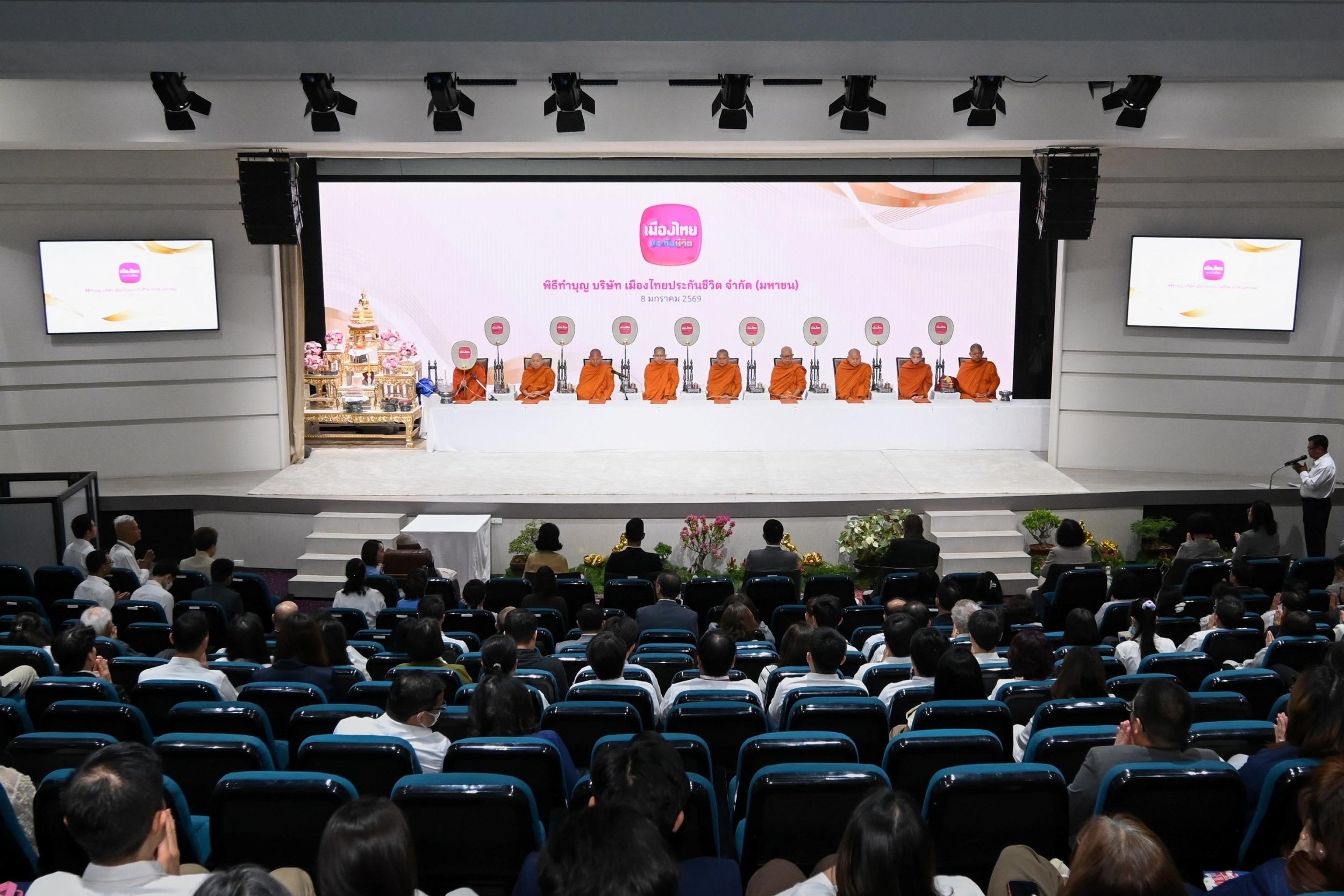 บริษัท เมืองไทยประกันชีวิต จำกัด (มหาชน) จัดพิธีทำบุญเสริมสิริมงคล เนื่องในโอกาสต้อนรับปีใหม่ ปี 2569 โดยมี นายโพธิพงษ์ ล่ำซำประธานกรรมการ เป็นประธานในพิธี พร้อมด้วยนางยุพา ล่ำซำ นายสาระ ล่ำซำ ประธานเจ้าหน้าที่บริหาร ดร.สุธี โมกขะเวส กรรมการผู้จัดการ นายภูมิชาย ล่ำซำ ที่ปรึกษาประธานเจ้าหน้าที่บริหาร คณะผู้บริหารและพนักงานร่วมในพิธี พร้อมประกาศเดินหน้าดำเนินธุรกิจด้วยความมุ่งมั่นในการส่งมอบความสุขและรอยยิ้มให้แก่ผู้มีส่วนเกี่ยวข้องทุกฝ่าย ควบคู่ไปกับการพัฒนาอย่างยั่งยืนในทุกมิติ ทั้งด้านผลิตภัณฑ์ ช่องทางการขาย คุณภาพการให้บริการที่ดี เข้าถึงได้ง่าย นวัตกรรมใหม่ ๆ ที่ตอบโจทย์ความต้องการได้อย่างลงตัว และการพัฒนาด้านบุคลากรรอบด้าน โดยมีเป้าหมายในการเป็นคู่คิดด้านการวางแผนชีวิตและสุขภาพที่ลูกค้าวางใจ พร้อมอยู่เคียงข้างดูแลในทุกช่วงของชีวิต อีกทั้งยังรักษาความเป็นผู้นำในธุรกิจที่เติบโตอย่างมั่นคงแข็งแกร่งอย่างต่อเนื่อง พิธีจัดขึ้น ณ เมืองไทยประกันชีวิต สำนักงานใหญ่