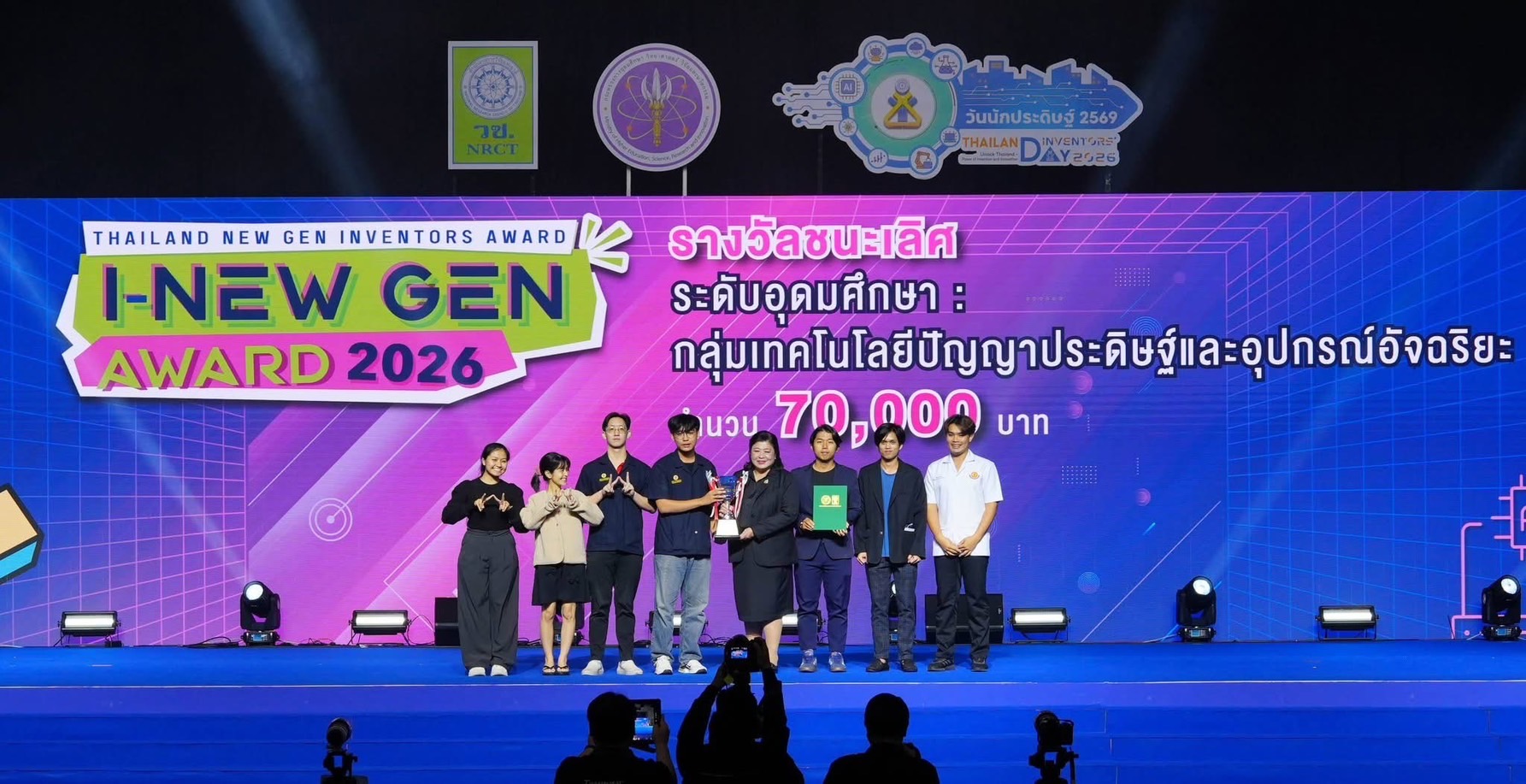 วันที่ 9 มกราคม 2569 สำนักงานการวิจัยแห่งชาติ (วช.) กระทรวงการอุดมศึกษา วิทยาศาสตร์ วิจัยและนวัตกรรม จัดพิธีมอบรางวัลการประกวดสิ่งประดิษฐ์และนวัตกรรม ระดับอุดมศึกษา (I-New Gen Award 2026) ภายในงาน “วันนักประดิษฐ์ ประจำปี 2569” (Thailand Inventors’ Day 2026) โดย ดร.วิภารัตน์ ดีอ่อง ผู้อำนวยการสำนักงานการวิจัยแห่งชาติ เป็นประธานในพิธี พร้อมด้วยคณะกรรมการผู้ทรงคุณวุฒิ และคณะผู้บริหารสำนักงานการวิจัยแห่งชาติ ร่วมแสดงความยินดี ณ ศูนย์นิทรรศการและการประชุมไบเทค บางนา กรุงเทพฯ