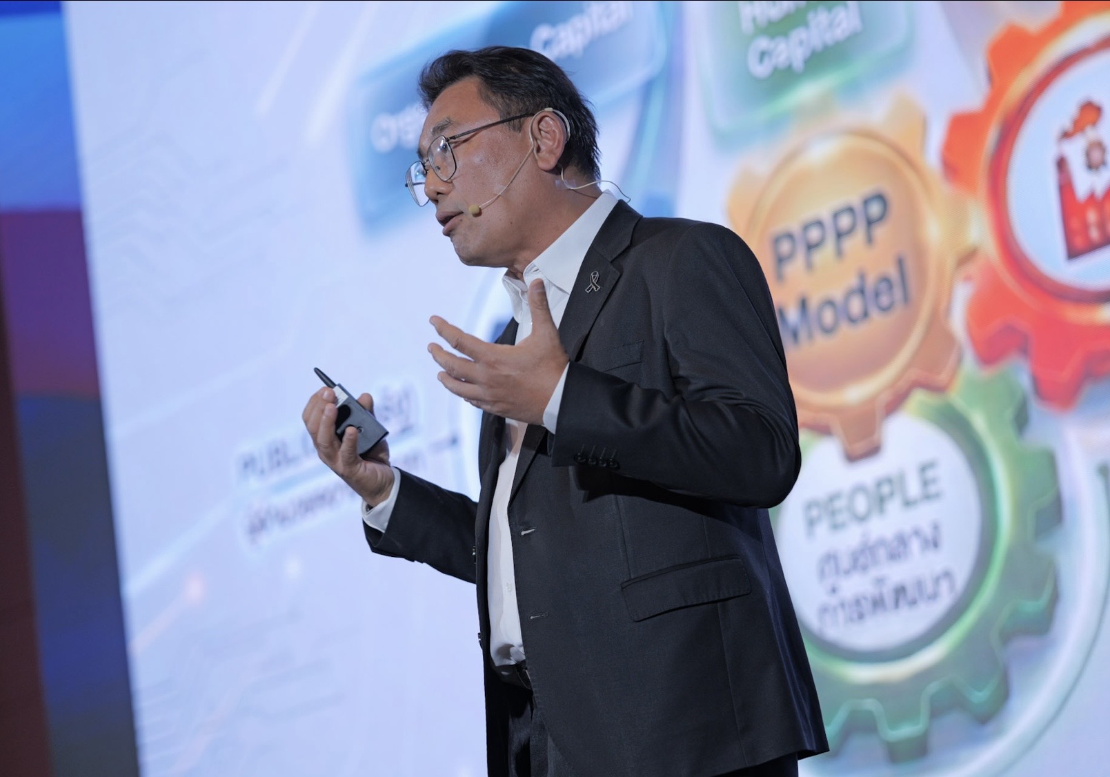 พลังขับเคลื่อนจะเกิดขึ้นจริงได้ต้องผสานความร่วมมือทุกภาคส่วน ด้วยโมเดล Public Private People Partnership (PPPP Model) ดังผลสำเร็จของสระบุรีแซนด์บ็อกซ์ที่ได้รับการยอมรับระดับโลก ผสานความร่วมมือของภาครัฐ เอกชน และประชาชน กว่า 50 องค์กร ที่เปลี่ยนการนำเข้าถ่านหินเป็นพลังงานสะอาดในประเทศใช้เทคโนโลยีส่งเสริมเกษตรแปรรูปสร้างมูลค่าเพิ่ม ส่งเสริมการท่องเที่ยวเชิงอนุรักษ์ และการฟื้นฟูป่าชุมชน ช่วยสร้างเศรษฐกิจให้ SMEs ในจังหวัดและพื้นที่ใกล้เคียง ช่วยสร้างรายได้กว่า 20,000 ล้านบาทต่อปี โมเดลนี้พร้อมสำหรับการขยายผลต่อไปในระดับประเทศ ซึ่งจะสามารถเพิ่ม GDP และสร้างรายได้มากกว่า 300,000 - 400,000 ล้านบาท”