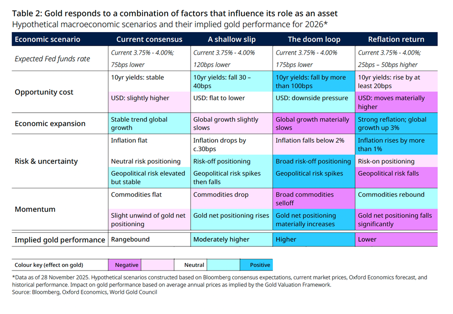 ภายใต้สถานการณ์ดังกล่าว รายงานแนวโน้มปี 2569 ฉบับเต็ม World Gold Council’s 2026 Gold Outlook ได้วิเคราะห์ถึง 3 สถานการณ์ที่อาจเกิดขึ้นนอกเหนือจากที่ตลาดคาดการณ์ไว้: