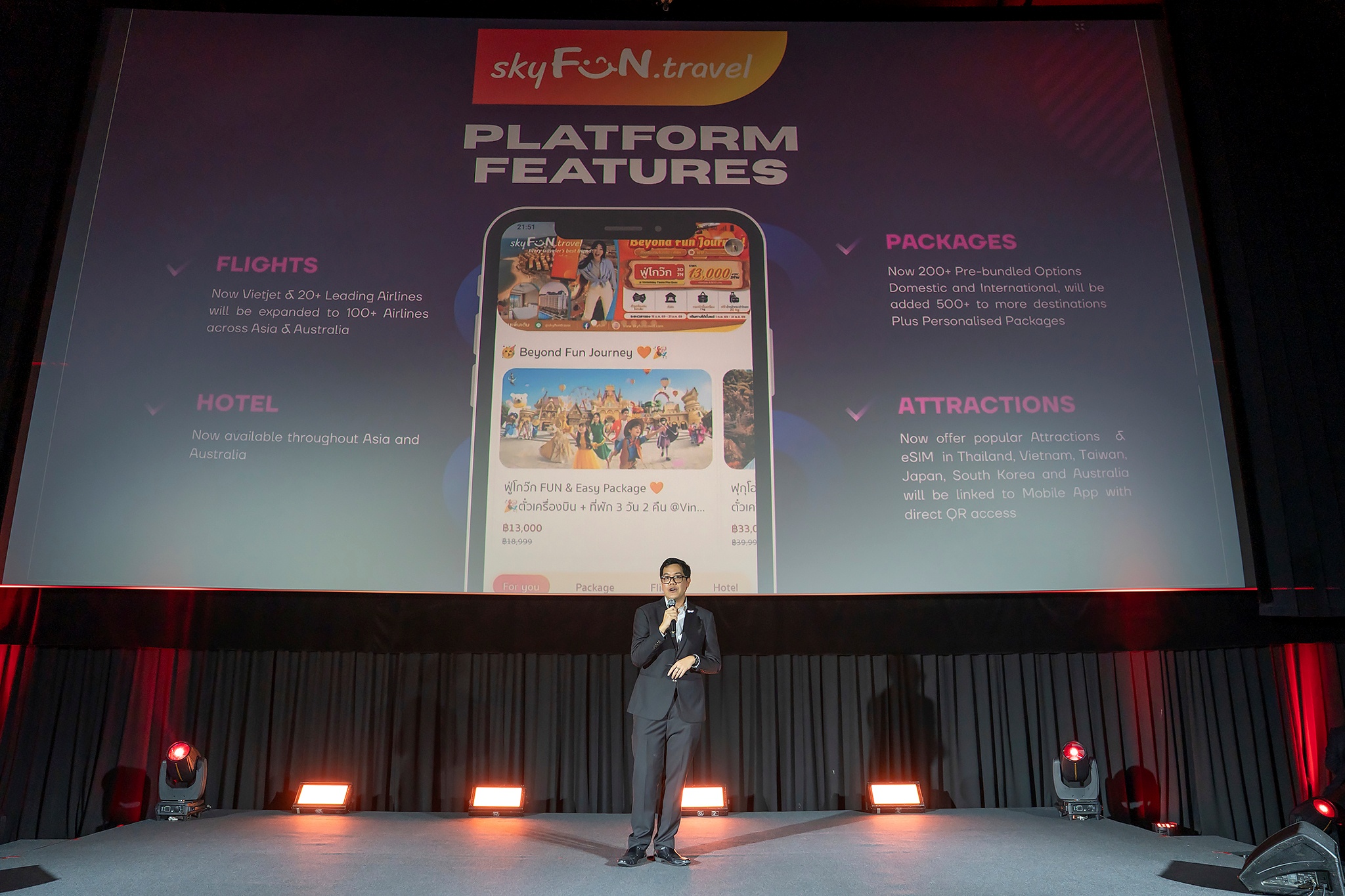 สกายฟันทราเวล ในเครือสายการบินเวียตเจ็ทไทยแลนด์ ก่อตั้งขึ้นในปี 2565 ภายใต้แนวคิด “เพื่อนเที่ยวคนโปรด” มุ่งนำเสนอผลิตภันฑ์และบริการด้านการท่องเที่ยวที่หลากหลายในราคาคุ้มค่าผ่านแพลตฟอร์มโมบายแอปพลิเคชั่น Skyfun และทางเว็บไซต์ www.skyfuntravel.com อาทิแพ็กเกจบัตรโดยสารเครื่องบินพร้อมที่พักสู่หลากหลายจุดหมายปลายทางยอดนิยมทั้งในและต่างประเทศ ครอบคลุมทั้งประเทศไทย เวียดนามญี่ปุ่น และจีน ด้วยประสบการณ์การนำเสนอผลิตภัณฑ์และบริการท่องเที่ยวแก่ผู้เดินทางกว่า 100,000การจองและได้รับความนิยมเพิ่มขึ้นอย่างต่อเนื่อง สกายฟันทราเวล ร่วมมือกับพันธมิตรสายการบิน โรงแรม และผู้ให้บริการชั้นนำ มีช่องทางการจองและตัวเลือกการชำระเงินที่หลากหลาย บริการหลังการขายผ่านช่องทางออนไลน์ที่สะดวกสบาย พร้อมให้คำแนะนำด้านการท่องเที่ยวตามแนวคิด เพื่อนเที่ยวคนโปรด สามารถศึกษาข้อมูลและรายละเอียดเพิ่มเติมได้ทาง Facebook.com/skyfun.travel