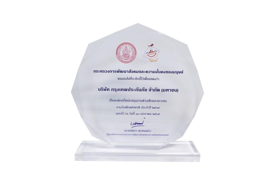 บริษัท กรุงเทพประกันภัย จำกัด (มหาชน) ได้รับรางวัลองค์กรที่สนับสนุนงานด้านเด็กและเยาวชน เนื่องในงานวันเด็กแห่งชาติ ประจำปี 2569 จากกรมกิจการเด็กและเยาวชน กระทรวงการพัฒนาสังคมและความมั่นคงของมนุษย์ โดยรางวัลดังกล่าวสะท้อนให้เห็นถึงการให้ความสำคัญและการมีส่วนร่วมของบริษัทฯ ในการสนับสนุน ส่งเสริม และพัฒนาศักยภาพของเด็กและเยาวชน เพื่อนำไปสู่การเติบโตที่เข้มแข็งและยั่งยืน ตลอดจนร่วมเสริมสร้างคุณภาพชีวิตที่ดีให้เด็กและเยาวชนด้วยการสร้างสภาพแวดล้อมที่เหมาะสมและสามารถใช้ชีวิตได้อย่างมีความสุข นับเป็นอีกหนึ่งความภาคภูมิใจที่ตอกย้ำถึงความรับผิดชอบต่อสังคมขององค์กรอย่างต่อเนื่อง