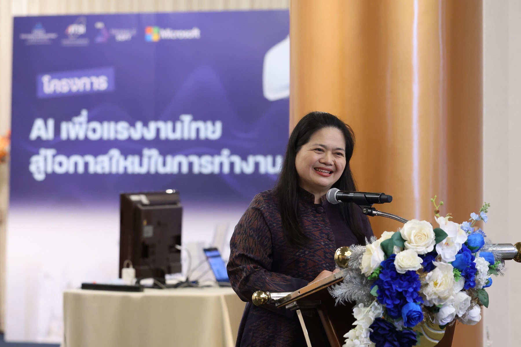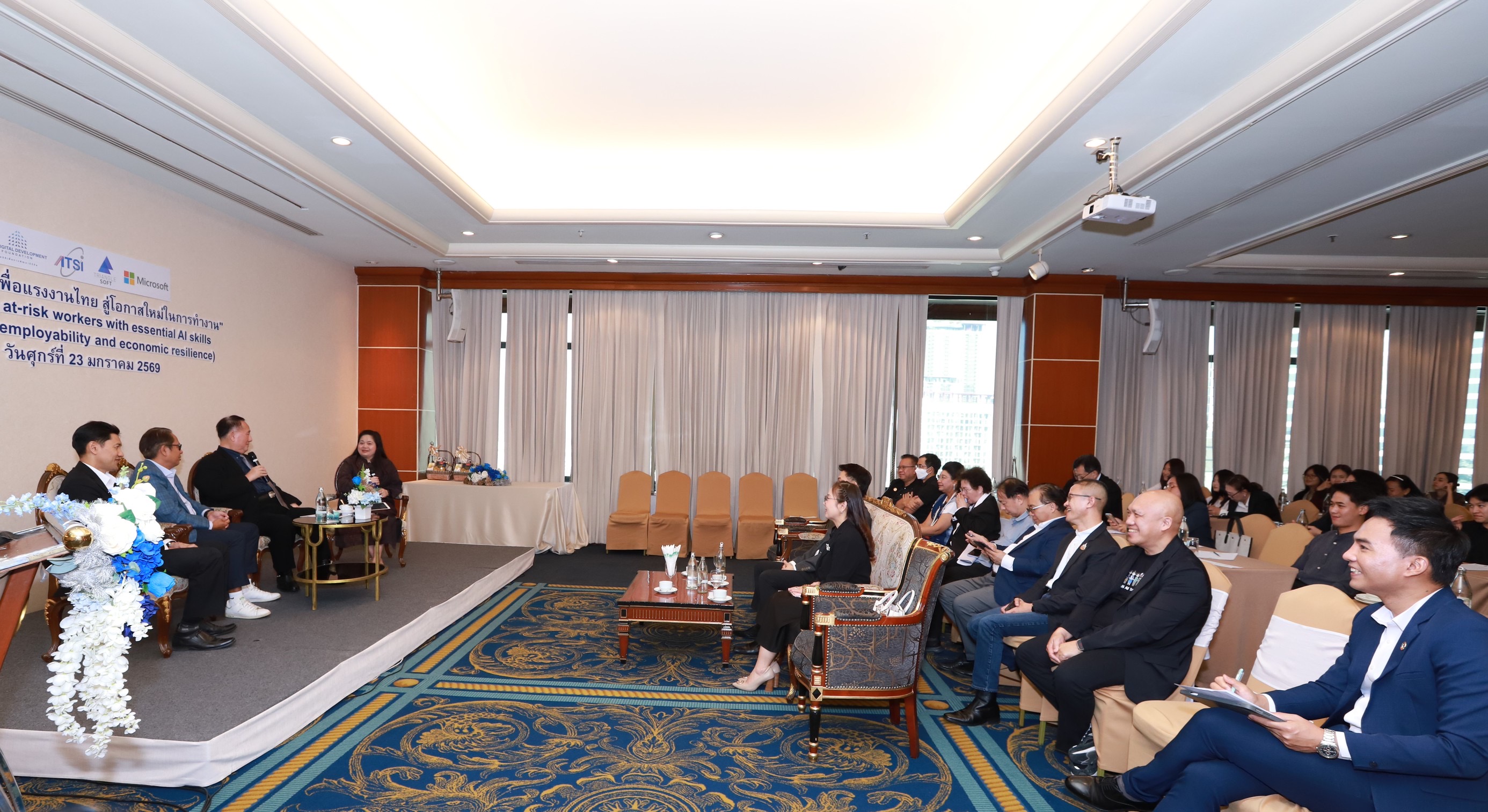 นอกจากนี้ ยังมีการนำเสนอหัวข้อ “Copilot for Productivity and Employability Strengthening” ซึ่งสะท้อนบทบาทของ AI ในการเพิ่มผลิตภาพและเสริมสร้างความสามารถในการทำงานของแรงงานไทยในสถานการณ์จริง