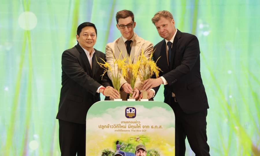 นายไพศาล หงษ์ทอง รองผู้จัดการธนาคารเพื่อการเกษตรและสหกรณ์การเกษตร (ธ.ก.ส.) เปิดเผยว่า ธ.ก.ส. ร่วมกับองค์กรความร่วมมือระหว่างประเทศของเยอรมัน (Deutsche Gesellschaft für Internationale Zusammenarbeit : GIZ) จัดงาน “ปลูกข้าววิถีใหม่ มีทุนให้จาก ธ.ก.ส. ภายใต้โครงการ Thai RiceGCF” เปิดตัวรูปแบบเงินอุดหนุนและสินเชื่อดอกเบี้ยต่ำ ภายใต้โครงการเพิ่มศักยภาพการปลูกข้าวที่เท่าทันต่อภูมิอากาศ (Thai Rice: Strengthening Climate-Smart Rice Farming Project) โดยมีวัตถุประสงค์เพื่อปรับเปลี่ยนกระบวนทัศน์ การปลูกข้าวของเกษตรกรให้เข้าสู่วิถีการปลูกข้าวที่ลดการปล่อยก๊าซเรือนระจกและมีความเท่าทันต่อสภาพภูมิอากาศ ด้วยการนำเทคโนโลยีที่เท่าทันต่อภูมิอากาศ (Climate Smart Technology : CST) มาปรับใช้ เพื่อสร้างความสามารถในการรับมือกับการเปลี่ยนแปลงสภาพภูมิอากาศของ เกษตรกรรายย่อย ภายใต้งบประมาณสนับสนุนจากกองทุนภูมิอากาศสีเขียว (Green Climate Fund :GCF)กระทรวงเพื่อความร่วมมือทางเศรษฐกิจและการพัฒนาแห่งสหพันธ์สาธารณรัฐเยอรมนี (BMZ) และภาคเอกชนพร้อมทั้งได้รับความร่วมมือจากหลายภาคส่วน อาทิ กรมการข้าว กรมส่งเสริมการเกษตร องค์กรความร่วมมือระหว่างระเทศของเยอรมัน (GIZ) และหน่วยงานพันธมิตรทั้งภาครัฐและเอกชน โดยมีพื้นที่เป้าหมาย 21 จังหวัด ได้แก่ เชียงราย เชียงใหม่ นครราชสีมา บุรีรัมย์ อุบลราชธานี ร้อยเอ็ด สุรินทร์ ศรีสะเกษ กาฬสินธุ์ ชัยนาท อ่างทองปทุมธานี สิงห์บุรี อยุธยา สุพรรณบุรี อุทัยธานี นครสวรรค์ กำแพงเพชร พิษณุโลก พิจิตร และลพบุรีมีระยะเวลาดำเนินโครงการ 5 ปี (พ.ศ. 2566 - 2571) ทั้งนี้ มีผู้แทนจากกระทรวงเกษตรและสหกรณ์ กรมการข้าว กรมส่งเสริมการเกษตร หน่วยงานภาครัฐและภาคเอกชน เข้าร่วมงาน ณ ห้องประชุมจำเนียรสาร ชั้น 24 เกษตรธนากร ธ.ก.ส. สำนักงานใหญ่