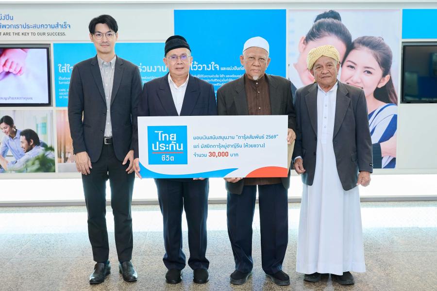 นายพิเชฐ เชาวน์ศิริ กรรมการชะรีอะฮ์ไทยประกันชีวิตตะกาฟุล ผู้แทนบริษัท ไทยประกันชีวิต จำกัด (มหาชน) มอบเงินจำนวน 30,000บาท แก่ ฮัจยีประดิษฐ มิ่งสมร อิหม่ามประจำมัสยิดดารุ้ลมู่ฮาญีรีน (ห้วยขวาง) เพื่อสนับสนุนกิจกรรมของมัสยิด ในงานดื่มน้ำชาการกุศล “ดารุ้ลสัมพันธ์ 2569” ซึ่งเป็นงานพบปะสังสรรค์ของชาวมุสลิมจากมัสยิดต่าง ๆ ในกรุงเทพฯ และจังหวัดใกล้เคียง เพื่อสร้างความสัมพันธ์อันดีกับชุมชนพื้นที่ใกล้เคียงบริษัทฯ