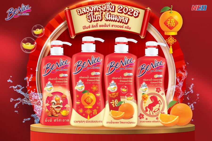 บีไนซ์ (BeNice) ผู้เชี่ยวชาญผลิตภัณฑ์ทำความสะอาดและบำรุงผิวกาย หนึ่งในแบรนด์สินค้าคุณภาพ ภายใต้บริษัท นีโอ คอร์ปอเรท จำกัด (มหาชน) ผู้ผลิตสินค้าอุปโภคสัญชาติไทยคุณภาพระดับมาตรฐานสากล ปล่อยแรร์ไอเทมรับตรุษจีน บีไนซ์ ลัคกี้ ออเรนจ์ – ลูนาร์ นิวเยียร์ ลิมิเต็ด อิดิชั่น (BeNice Lucky Orange - Lunar New Year Limited Edition) ครีมอาบน้ำลิมิเต็ดที่ไม่ได้มีดีแค่ความหอม แต่พร้อมมอบสัมผัสแห่งความมั่งคั่ง โดยหยิบเอา “ส้ม” ผลไม้มงคล สัญลักษณ์แห่งความโชคดี บริบูรณ์ มั่งคั่ง มาเนรมิตเป็นครีมอาบน้ำสูตรพิเศษที่เปลี่ยนการอาบน้ำให้เป็นโมเมนต์แห่งการรับพลังบวก พร้อมอวดผิวสวยใสรับปีทอง แบบเฮงๆ ปังๆ