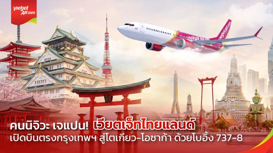 “เวียตเจ็ทไทยแลนด์” เปิดเส้นทางบินตรงสู่โตเกียวและโอซาก้า ด้วยโบอิ้ง 737-8 รุ่นใหม่ล่าสุด