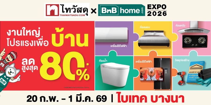 “ไทวัสดุ x บีเอ็นบี โฮม เอ็กซ์โป 2026” มหกรรมสินค้าบ้านสุดยิ่งใหญ่รับปีม้าไฟ ขนทัพสินค้าลดกระหน่ำสูงสุด 80% มอบความคุ้มค่ารับต้นปี ครบจบเรื่องบ้านในงานเดียว 20 ก.พ. – 1 มี.ค. 69 ณ ไบเทค บางนา