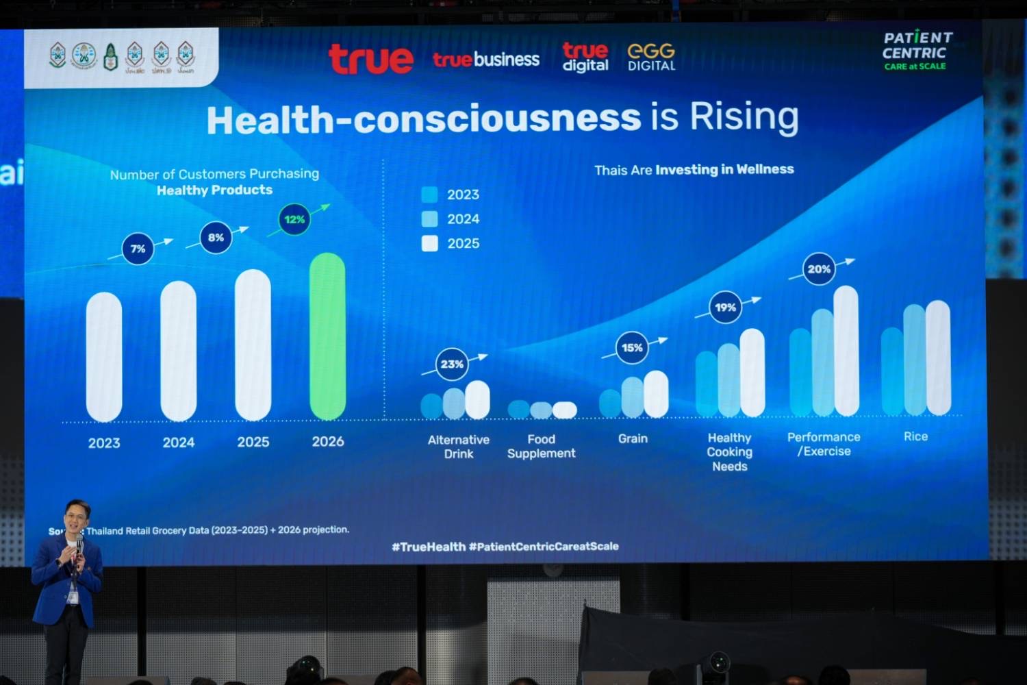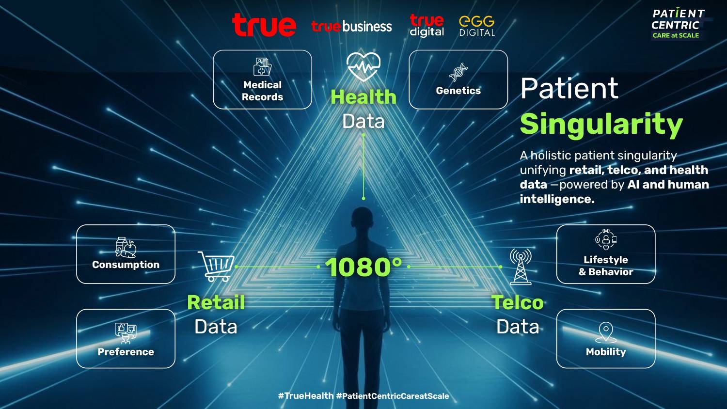 บมจ. ทรู คอร์ปอเรชั่น ได้เปิดหน้าประวัติศาสตร์สาธารณสุขไทยยุคใหม่ที่ขับเคลื่อนด้วยข้อมูล ผ่านการบรรยายในหัวข้อ “From Data to Health Scoring” มีหัวใจสำคัญ คือ “Patient Singularity” ที่หลอมรวมข้อมูลขนาดใหญ่ 1080° เข้ากับ AI และ Human Intelligence เชื่อมโยงข้อมูลในระบบสุขภาพทั้งจากโรงพยาบาลและการใช้ชีวิตประจำวันในมิติต่างๆ เพื่อยกระดับการดูแลสุขภาพได้แบบเฉพาะเจาะจงรายบุคคล พร้อมสร้างนิยามใหม่ของการดูแลสุขภาพเชิงป้องกัน ด้วยแนวคิด “Health Scoring” ดัชนีสุขภาพที่ทุกคนเข้าถึงได้ ทำให้คนไทยมี Health Literacy และสุขภาพดีถ้วนหน้า