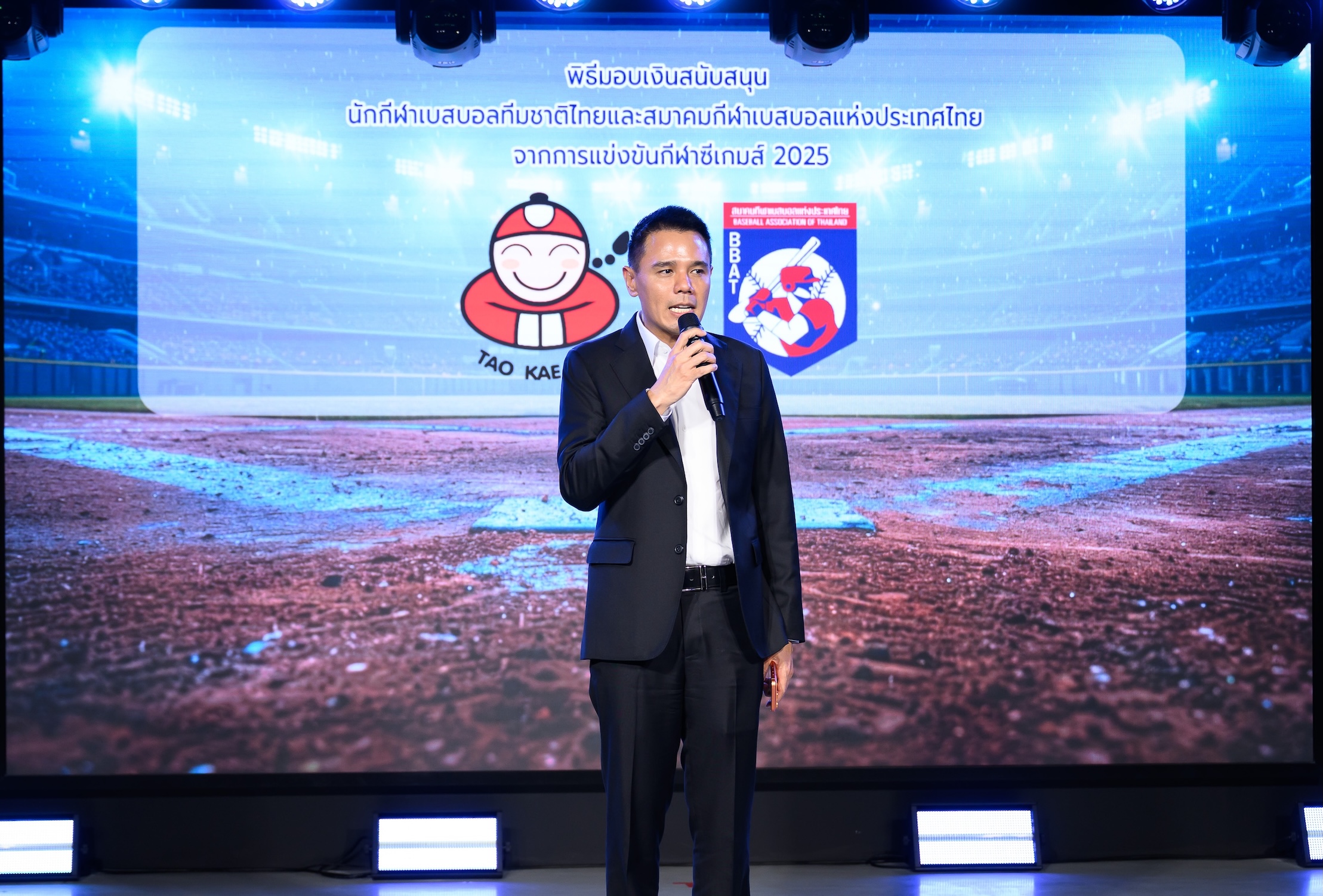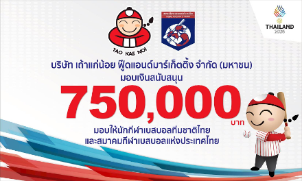 บริษัท เถ้าแก่น้อย ฟู๊ดแอนด์มาร์เก็ตติ้ง จำกัด (มหาชน) ผู้นำตลาดสาหร่ายแปรรูปอันดับ 1 ของไทย ได้จัดมอบเงินสนับสนุน และร่วมแสดงความยินดีให้แก่สมาคมกีฬาเบสบอลแห่งประเทศไทย ณ สถาบันเน็กซ์ ไอดอล ศูนย์การค้าจามจุรีสแควร์ หลังจากที่ทีมเบสบอลทีมชาติไทย สร้างผลงานได้อย่างยอดเยี่ยม คว้า 1 เหรียญทอง จากการแข่งขันทีมเบสบอล 5 คน และ 1 เหรียญเงิน จากการแข่งขันทีมเบสบอลชาย ในการแข่งขันมหกรรมกีฬาซีเกมส์ ครั้งที่ 33 (SEA Games 2025) ที่ผ่านมา เป็นจำนวนเงินสนับสนุนรวมทั้งสิ้น 750,000 บาท โดยแบ่งเป็นเงินรางวัลสำหรับทีมเบสบอล 5 คน จำนวน 300,000 บาท ทีมเบสบอลชาย จำนวน 300,000 บาท และเงินโบนัสจากการเอาชนะการแข่งขัน แมตช์ละ 50,000 บาท รวม 3 แมตช์ ซึ่งเงินสนับสนุนทั้งหมดนี้ ถือเป็นรางวัลแห่งความสำเร็จ เป็นขวัญกำลังใจแก่นักกีฬาและทีมงาน