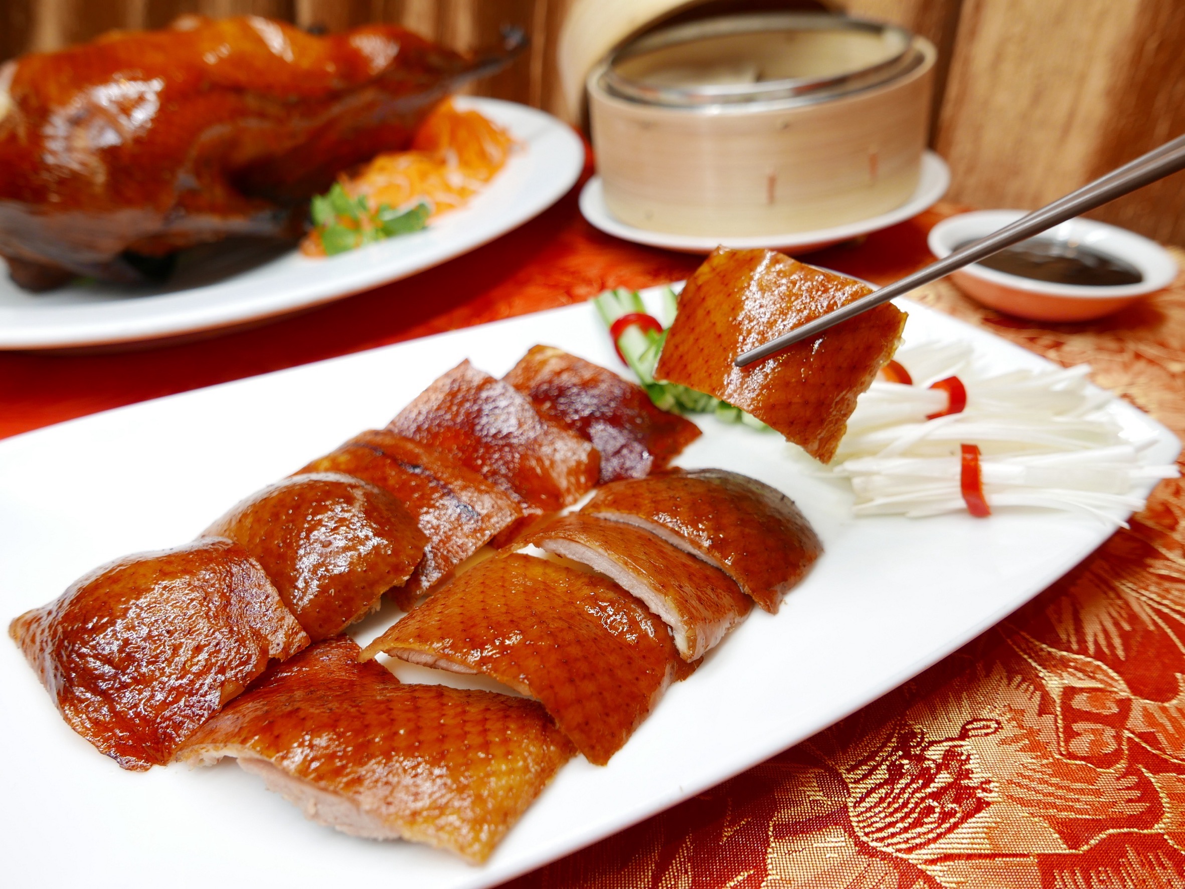 ต่อด้วยความหรูหราระดับตำนานจาก Four Seasons Chinese Restaurant ชั้น G กูร์เมต์การ์เด้น ร้านอาหารจีนชั้นเลิศที่รังสรรค์เมนูมงคลตามตำรับกวางตุ้งอย่าง “เป็ดย่าง เป็ดปักกิ่ง” เมนูสื่อความหมายถึงความอุดมสมบูรณ์ โชคลาภ และ ความสำเร็จ อีกทั้งยังสื่อถึง ความบริสุทธิ์ ความสงบสุข และ ความสามารถรอบด้าน เป็นอาหารที่นิยมเสิร์ฟในเทศกาลสำคัญ อีกหนึ่งเมนูที่เรียกได้สำคัญไม่แพ้กัน “ปลาเก๋านึ่งซีอิ๊ว” ปลา (ฮื้อ) มีความหมาย ”เหลือกินเหลือใช้” เมื่อรับประทานแล้วมีความเชื่อว่าจะทำให้มีเงินเหลือเก็บเหลือใช้ตลอดไปนอกจากนี้ยังมีเมนูมงคลอีกมากมาย อาทิ ขาหมูตุ๋นเต้าหู้ยี้แดง, ปูเนื้ออบวุ้นเส้นไทซาน, หมี่ซั่วผัดแห้งรวมมิตร และเจี๋ยวจือ เกี๊ยวตรุษจีน เป็นต้น